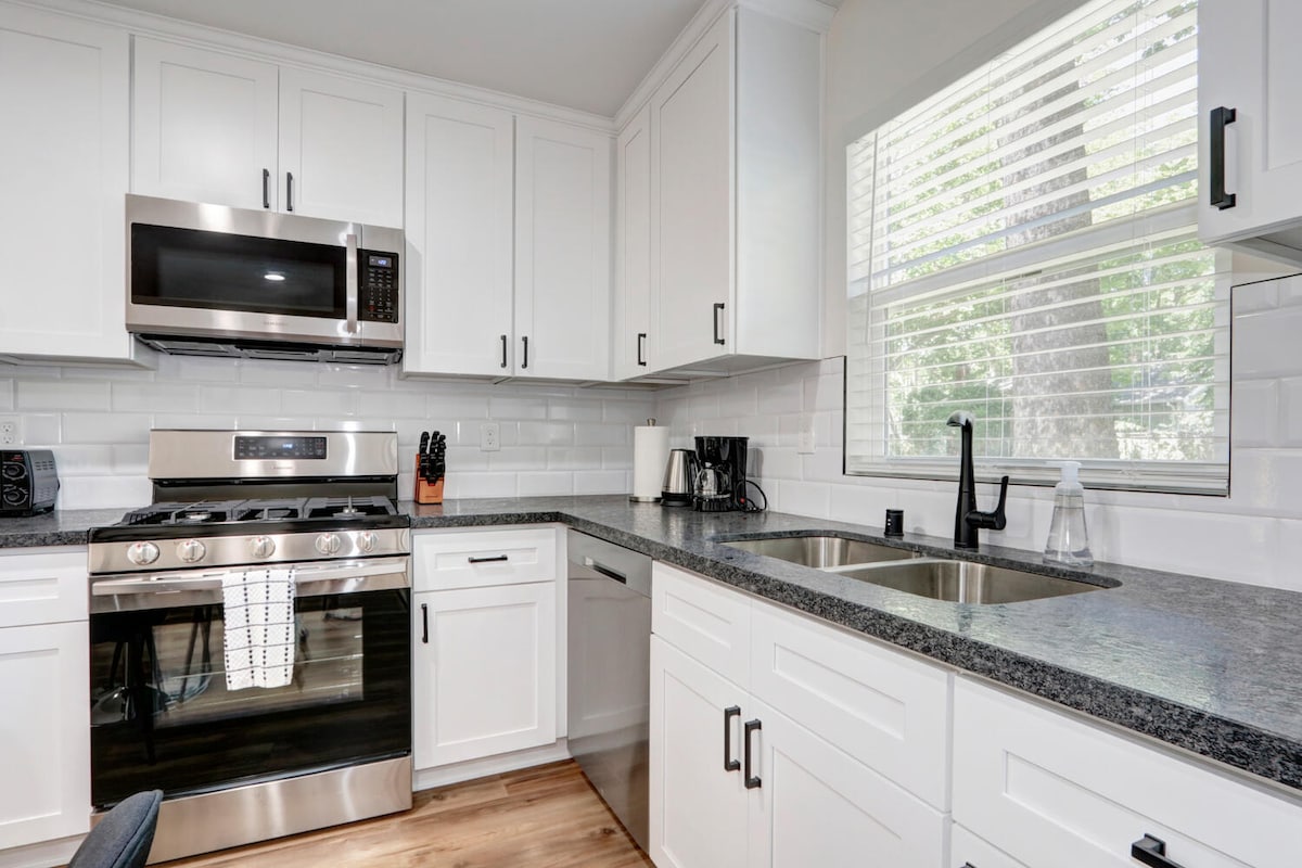Relájate y sumérgete en un mundo de estilo, comodidad y conveniencia. Esta casa de campo recién reformada tiene todo lo que podrías necesitar y algo más. Cama tamaño king con colchón y ropa de cama de lujo más sofá cama tamaño queen, cocina totalmente equipada y bar de café, además de lavadora y secadora. El patio privado cuenta con barbacoa de gas y comedor al aire libre. Entrada privada y cerrada con capacidad para dos coches en tándem. A poca distancia a pie de cafeterías, restaurantes y mucho más. Disfruta de una estancia verdaderamente elevada.