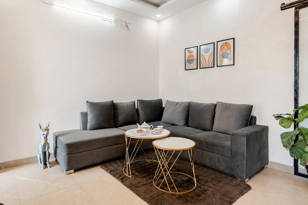 Apartamento tranquilo, espacioso y acogedor para parejas: - elegante sala de estar: libros, juegos de mesa - cocina cargada - hermoso dormitorio: TV con DTH (cientos de canales) y aplicaciones Ott (acnt reqd) -: vistas abiertas del horizonte de Gurgaon - Baño limpio - estación de trabajo - ubicación estratégica: fácil acceso desde NH48, Dwarka Expressway, SPR, American Express, Air India, TCS, Skyview Corporate Park, DLF Verdes para empresas - estacionamiento cubierto gratuito - centros comerciales, Inox, pubs y restaurantes en las mismas instalaciones. - taxis las 24 horas