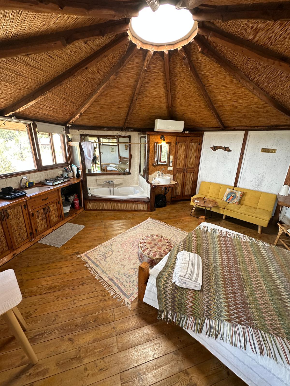 Una cabaña mágica en Klil con una auténtica piscina de piedra al aire libre Adecuado para parejas/solteros que buscan relajarse. Cocina equipada, lujoso baño con agua caliente siempre (caldera de gas) un balcón con vistas al Mediterráneo e interminables puestas de sol. Si tu alma está pidiendo un poco de descanso en la naturaleza mágica, te invitamos.