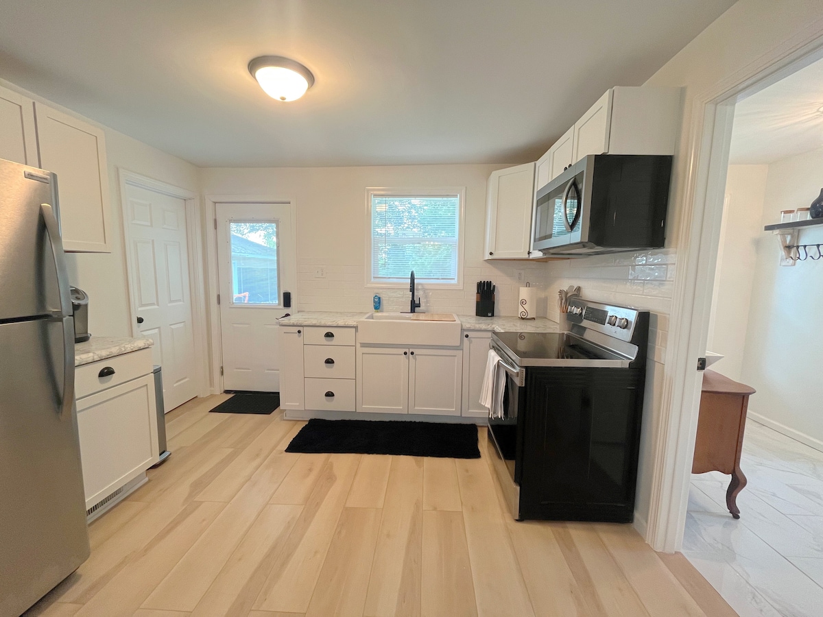 *ALOJAMIENTO EN VIVIENDAS SEPARADAS, (garaje/estudio convertido y nivel inferior)* con entrada propia desde el porche delantero. (La puerta del nivel inferior a la planta principal está asegurada con cerraduras). Siempre se respeta tu privacidad. Si hay algo que necesites, solo pregunta. Relájate y disfruta de esta casa prístina, bien equipada, libre de humo y mascotas, con un porche con mosquitero con vistas a tu propio patio trasero privado. Colchones de alta gama Wifi rápido 32.9/10 Central Air Parrilla Weber Keurig. 2 cámaras de seguridad en la parte delantera