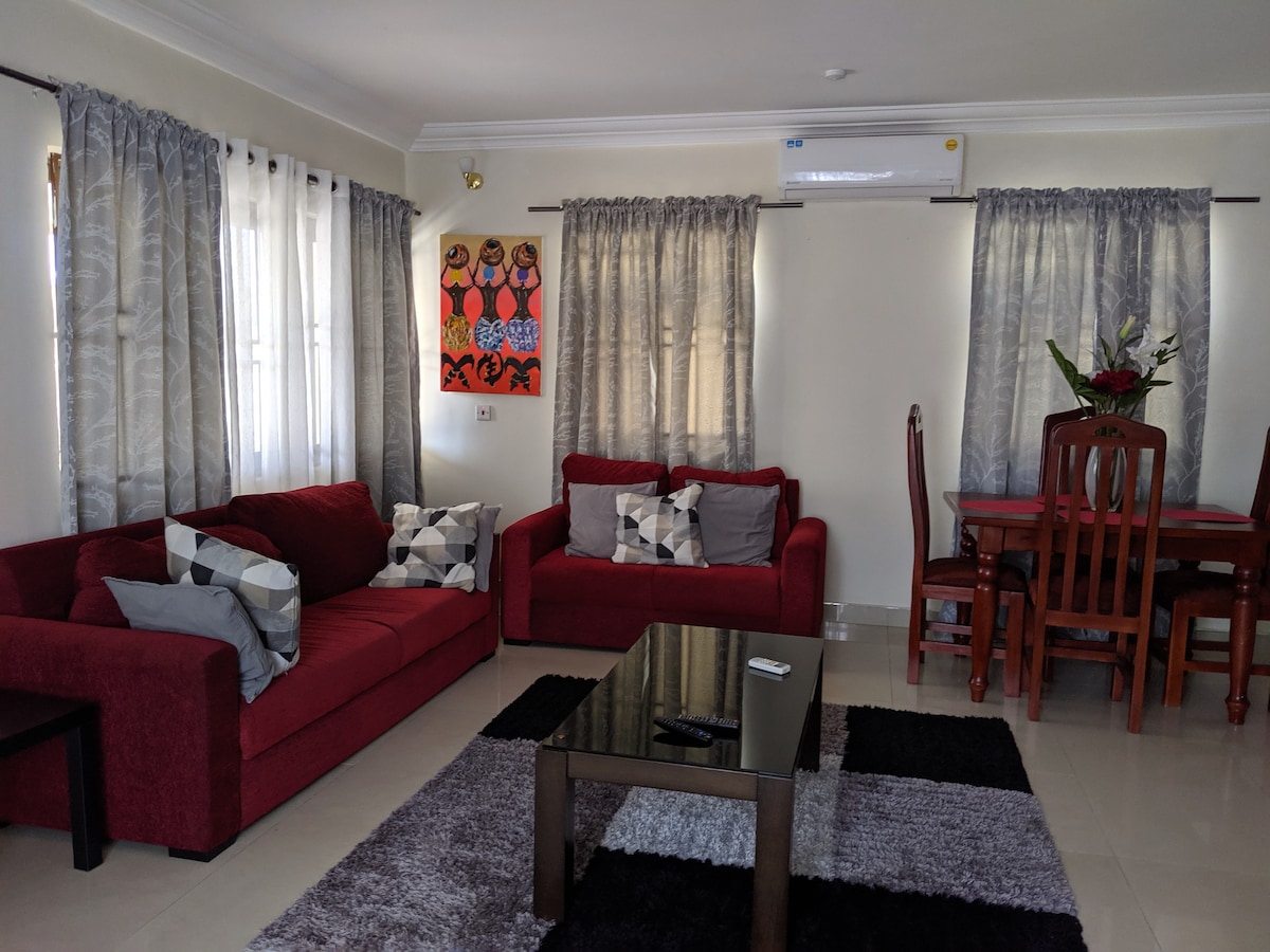 ¡Te damos la bienvenida a una experiencia única! Si estás buscando un lugar hermoso con un toque de lujo, algo inteligente y elegante, con un impresionante jardín, piscina, jacuzzi y gimnasio, no busques más. ¡Este es el lugar perfecto para ti! Nuestro departamento está idealmente situado, al alcance de las mejores atracciones de Accra. Estamos a solo 25 minutos del centro comercial Accra, a 10 minutos del centro comercial Achimota, y se puede llegar a la playa en solo 30 minutos. Somos fácilmente accesibles desde el aeropuerto, a solo 11 km de distancia.