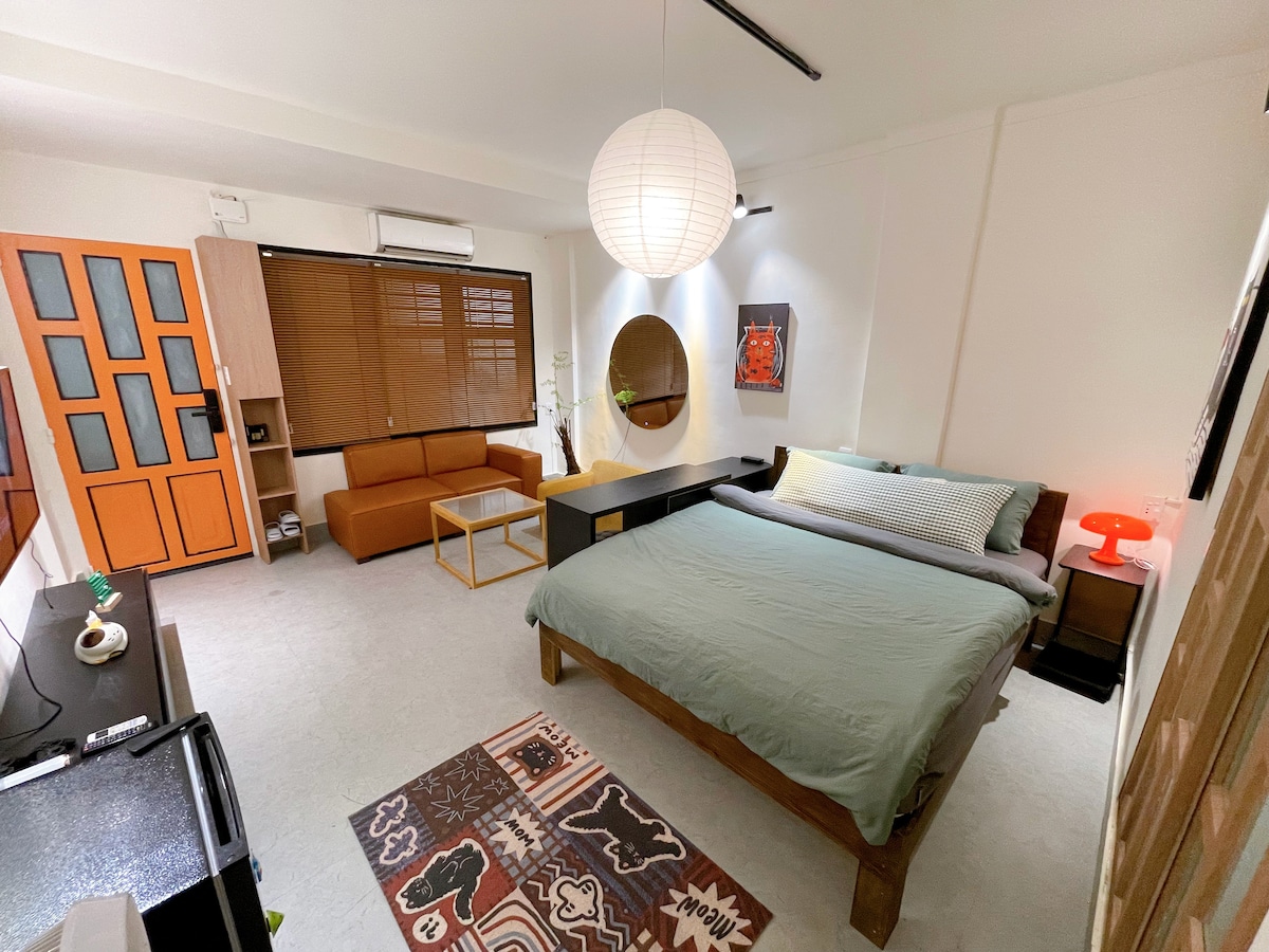 Our studio provides a comfortable and convenient home base for your stay in the city. It is located just a few steps away from popular tourist attractions like Ben Thanh Market, Bui Vien area, Nguyen Hue walking street, and many others. ✯ Central location & 5 mins to MRT ✯ Elevator access ✯ Self-check-in / check-out. Late-night check-in support. ✯ Spacious front-facing balcony ✯ 40m2 - Queen-sized bed - private bathroom ✯ Smart TV with Netflix ✯ AC, microwave, a kitchenette, & fridge available