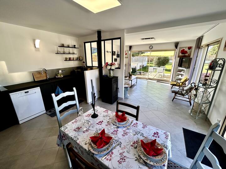 Estimada viajera, estimado viajero: Ya sea por unos días para una breve estancia o varias semanas como parte de un tratamiento termal, venga a dejar sus maletas en esta magnífica casa reformada y decorada con buen gusto. Aquí podrá disfrutar del encanto de lo antiguo, la comodidad tranquila mientras disfruta de una terraza soleada y un jardín verde. No dude en descubrir en nuestro perfil más de 450 comentarios elogiosos sobre nuestros diferentes anuncios. Gracias por su confianza.