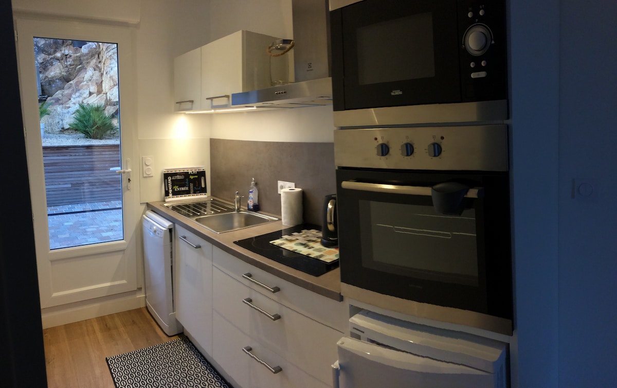 El apartamento se encuentra en el primer piso de una residencia nueva (julio de 2019) , con impresionantes vistas al mar. Tiene una superficie de 50 m2 y consta de: - un dormitorio - un baño con ducha y WC - una cocina equipada - una sala de estar con TV - una plaza de aparcamiento - un balcón para disfrutar de las vistas. El edificio se encuentra a 10 minutos a pie del centro. La ruta GR34 también pasa al pie de la residencia, lo que permite dar agradables paseos. Instagram del apartamento: les_embruns22