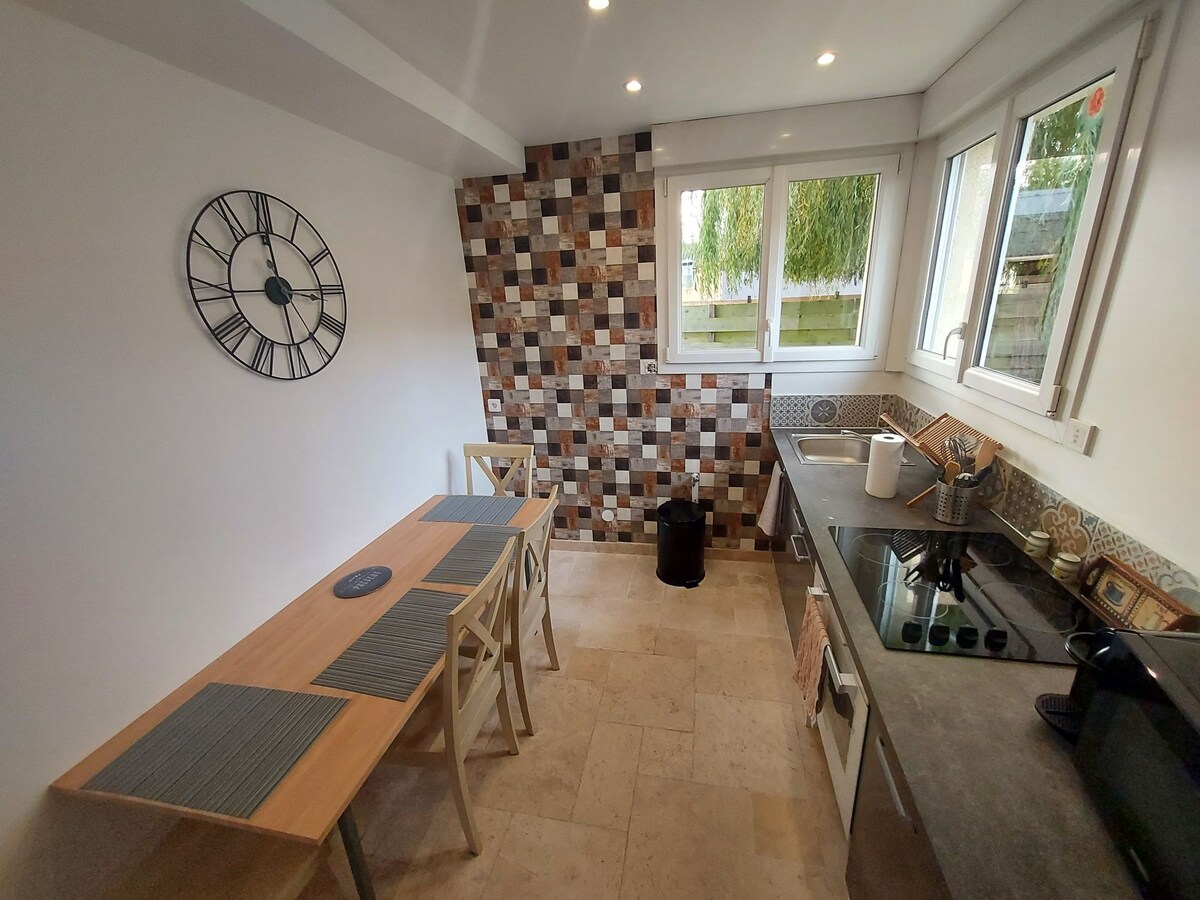 Ideal para una estancia familiar, profesional o con amigos, disfrute de la tranquilidad de este alojamiento idealmente situado en una zona residencial cerca del Museo del Memorial, el centro de la ciudad de Caen (a 10 minutos en coche) y el mar (a 20 minutos en coche). Supermercado y restaurantes accesibles en un minuto en coche. Centro ecuestre y parque a poca distancia. Estacionamiento gratuito y fácil en la calle.
