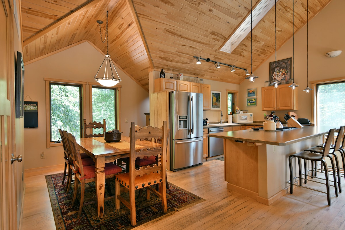 Relájate en nuestra encantadora cabaña de madera de 1 dormitorio ubicada en el corazón de la naturaleza. Perfecto para una escapada romántica o un fin de semana tranquilo, este sereno refugio ofrece más de una milla de senderos boscosos, ideales para largas caminatas, esquí de fondo o raquetas de nieve. Relájate junto al puente cubierto y echa una caña para disfrutar de una tarde tranquila de pesca, o simplemente observa a los ciervos pasear desde la puerta de tu casa. Ya sea que busques soledad o aventura, este es el mejor lugar para desconectarte y recargar energías.