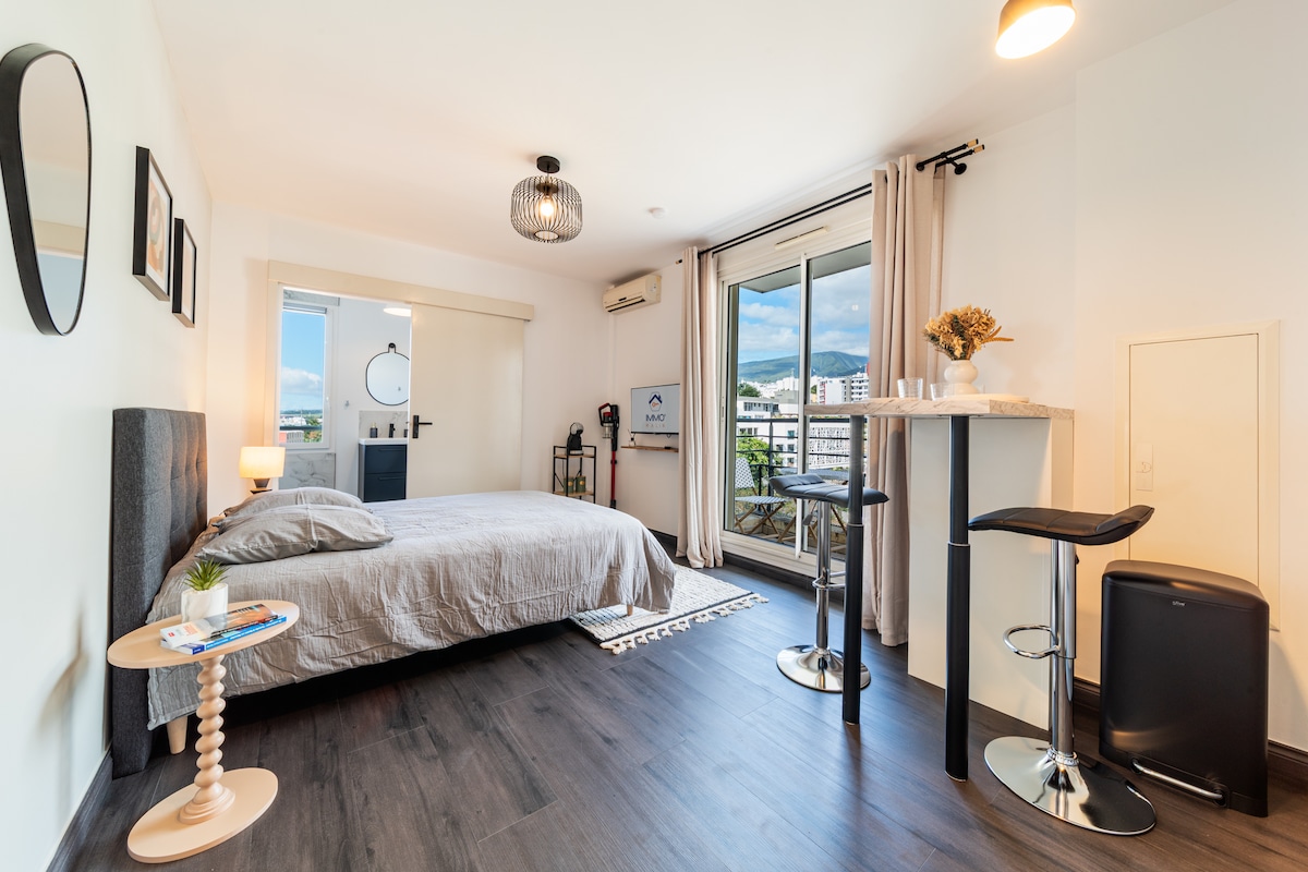 Bienvenido a este espacioso y único piso dúplex de 65m2. Encaramado en la 11ª y última planta de la residencia más alta del norte de la isla, podrá aprovechar al máximo las vistas panorámicas al mar y a la montaña desde uno de los dos balcones. Situado a 13 minutos del aeropuerto, en el Blvd Sud (eje central), será ideal para sus estancias de negocios o turísticas. *Cine en casa en el dormitorio con balcón *Piscina en la residencia *Parking privado *Aire acondicionado *Netflix *Fibra