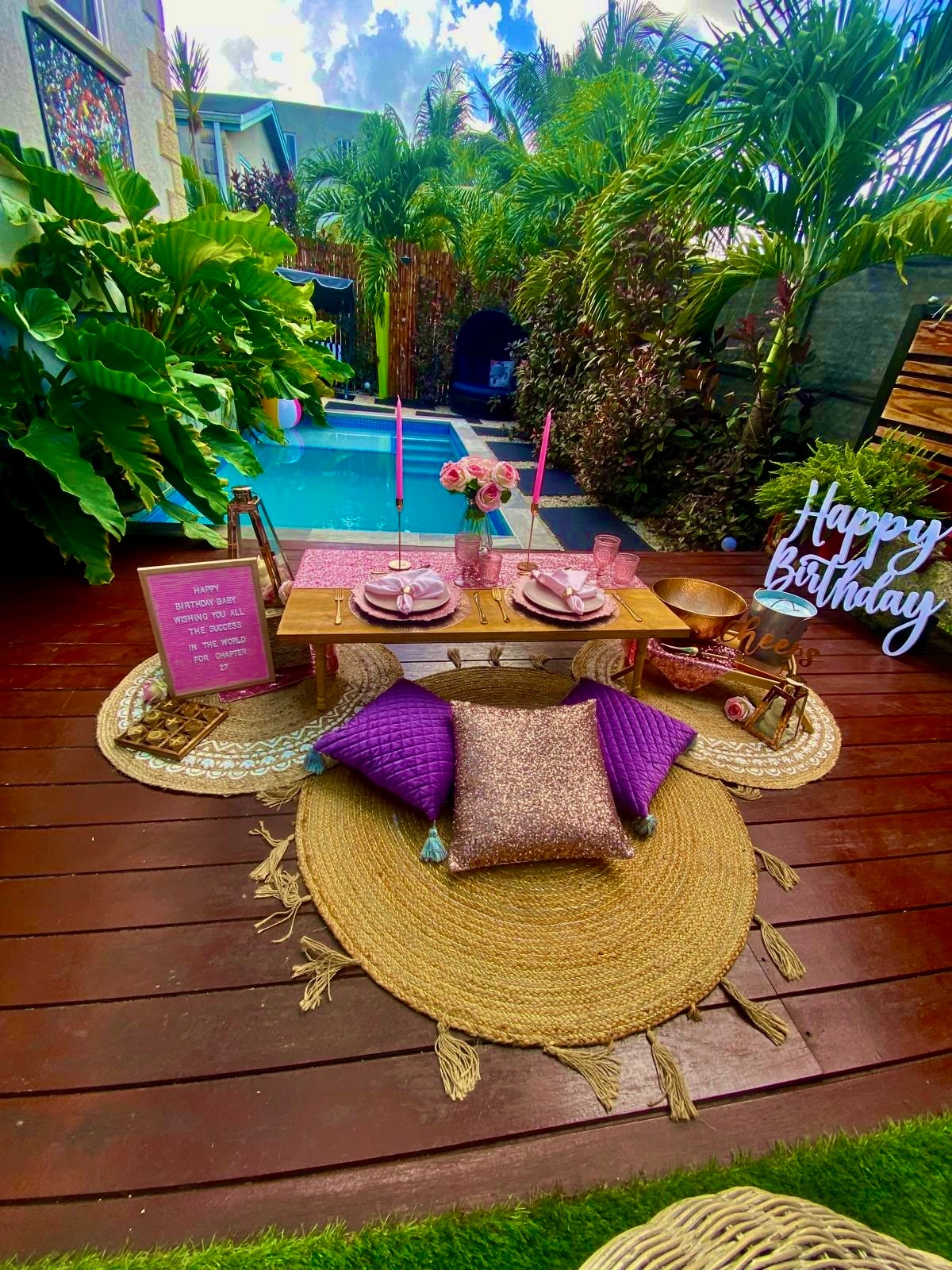 Una hermosa villa de lujo de 3 dormitorios con puertas electrónicas y exuberantes jardines tropicales que rodean una piscina privada con asientos integrales para masajes spa-jet. La villa Golden Palm tiene un solárium con tumbonas para refrescar y relajar los cuerpos bañados por el sol, así como una terraza cubierta junto a la piscina equipada con un gran patio, perfecto para cenar al aire libre.