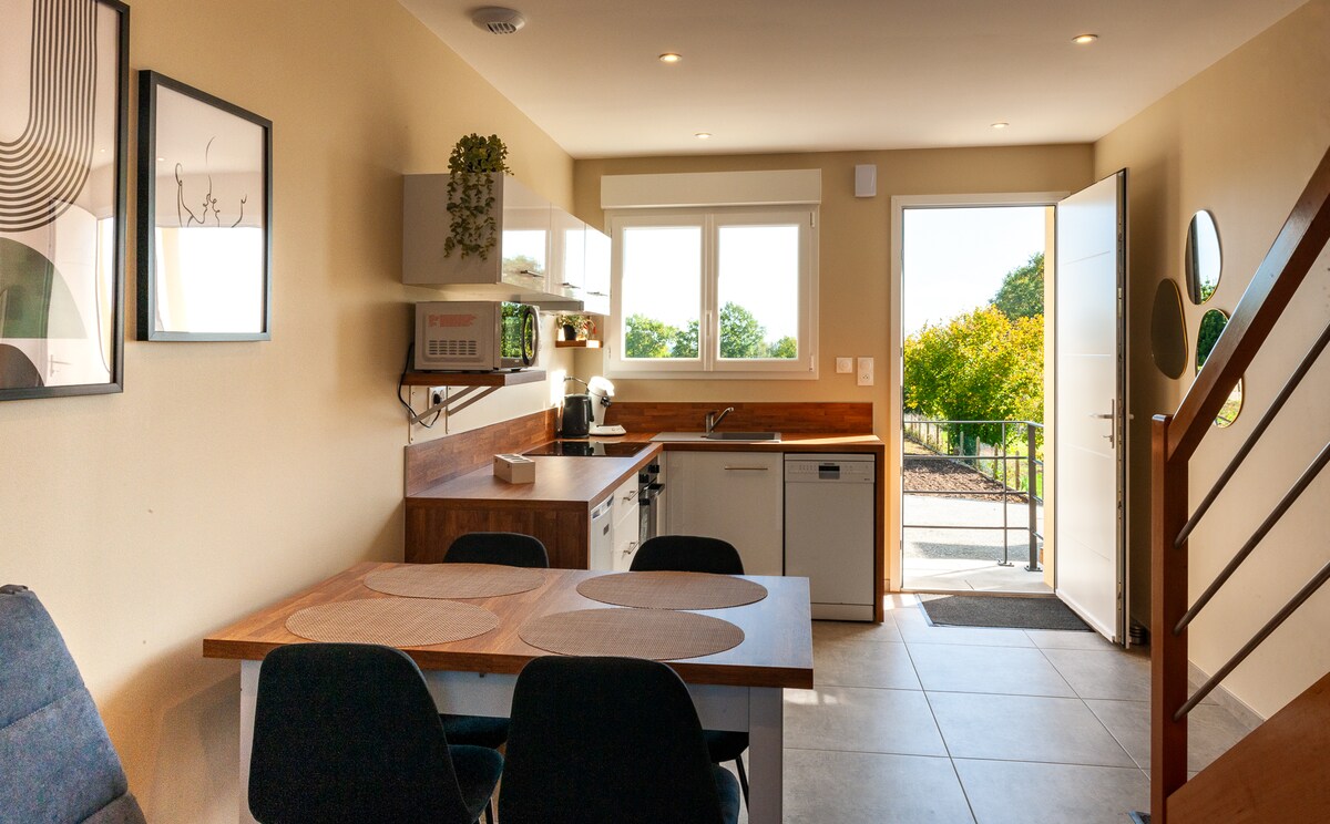 ¡A medio camino entre el Monte St Michel y los castillos del Loira! En una ruta de senderismo, se alojará cómodamente en la tranquilidad del campo y con total independencia. Tendrá a su disposición una bonita sala de estar con 1 sofá y 1 mesa, 2 dormitorios y un baño. Dispondrá de una terraza privada frente a los pastos. Solo, en pareja, con sus hijos o un par de amigos, estaremos encantados de recibirle y ofrecerle un desayuno con nuestros productos caseros.