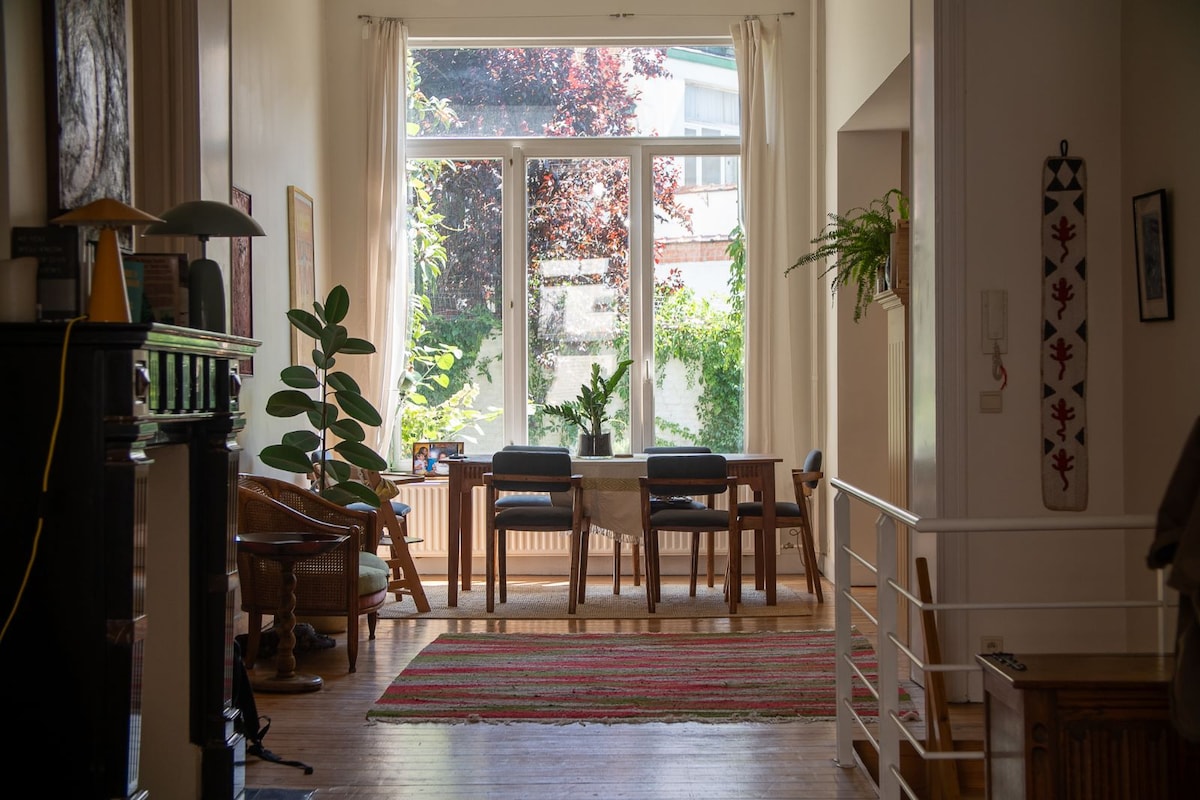 Típico apartamento de Bruselas situado en la planta baja de un pequeño edificio con 4 apartamentos. Calle tranquila en el moderno barrio de Saint Gilles y la plaza Van Meenen (ten en cuenta que el apartamento no se encuentra dentro del centro de la ciudad/centro histórico). Restaurantes locales, bares de moda, tiendas de cómics o mercados se agrupan en esta zona animada y cosmopolita. A 5 minutos del transporte público al centro histórico de BXL, Place Flagey o Gare du Midi. Dúplex con capacidad para 4 personas.