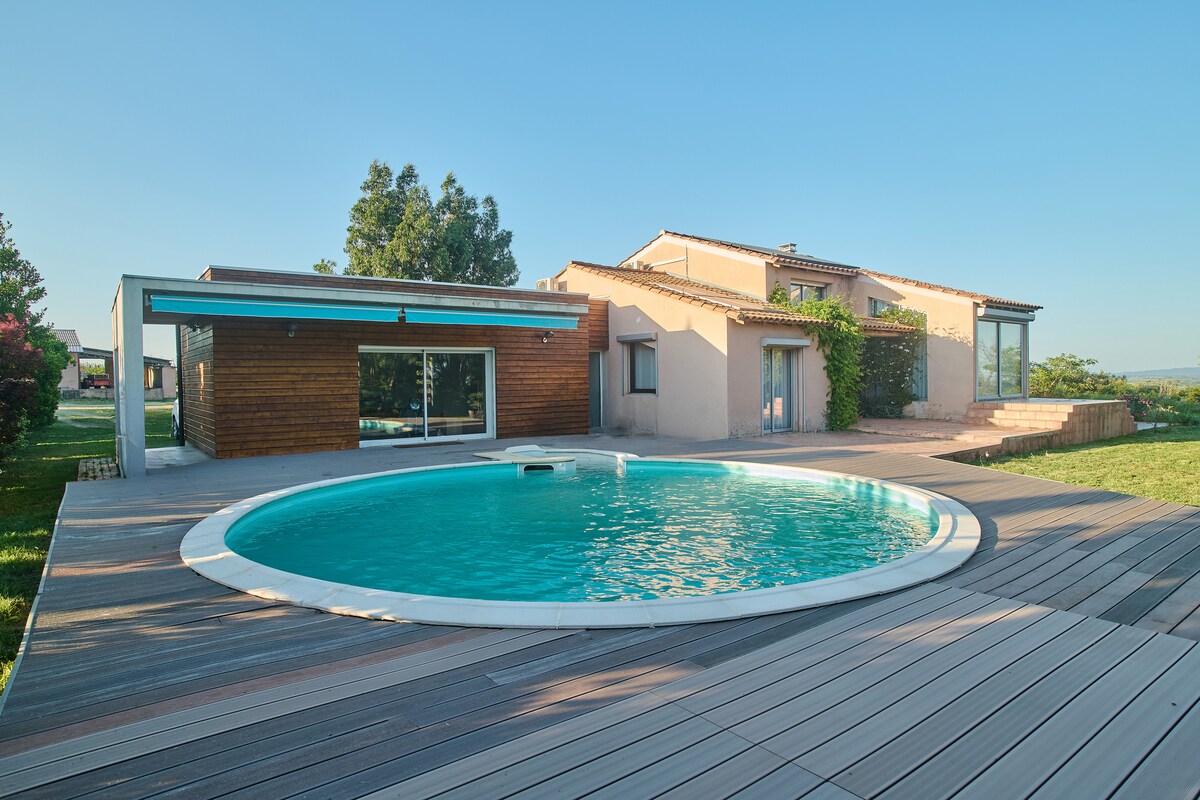 La Villa du Mas Rose se encuentra en una Masía en las Costières de Nimes, con una vista panorámica de los Alpilles, Fontvieille y Arles. Un entorno tranquilo y seguro, ideal para familias o para quienes buscan relajarse lejos del bullicio de las grandes ciudades. Estarás a las puertas de la Camarga, con sus toros, caballos, flamencos y los viñedos de las Costières de Nimes. Podrá visitar Nimes con sus Arenas, el Pont du Gard, Arles con su antiguo teatro.