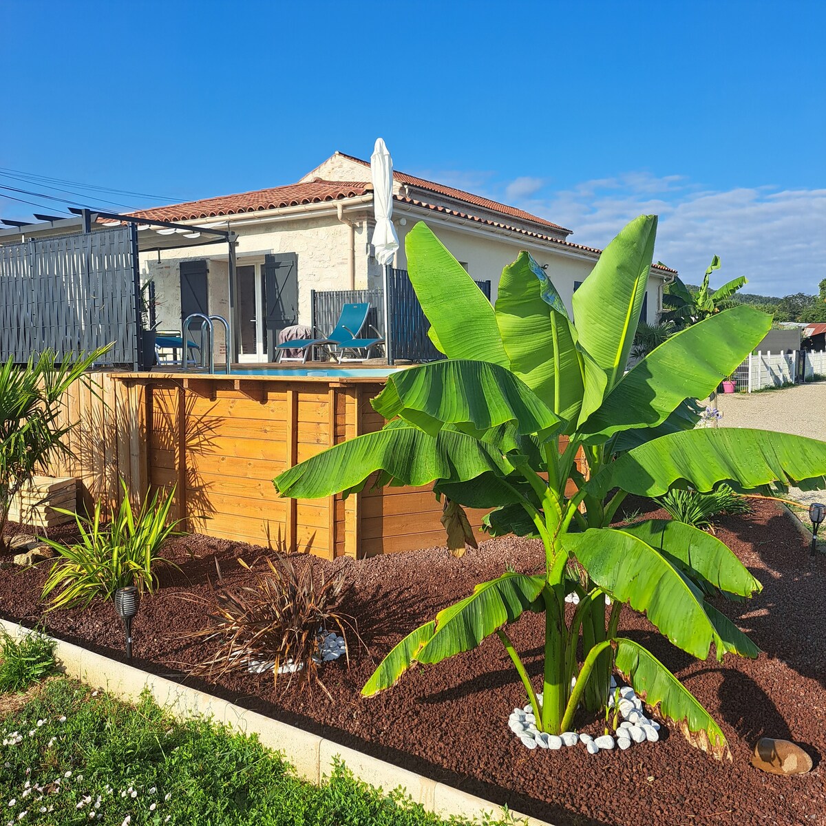 🌴 La Villa des Palmiers en Bon-Encontre le da la bienvenida a un entorno ideal para estancias en familia o con amigos. ❄️ Totalmente climatizada, garantiza un confort óptimo en cualquier estación del año. Cuenta con 4 cómodas habitaciones, 2 baños y 2 aseos. 🏊♂️Disfrute de una piscina de agua salada climatizada desde junio hasta finales de septiembre (climatización opcional en mayo y octubre), así como de una cancha de petanca para pasar momentos agradables al aire libre. ⭐ Un lugar perfecto para relajarse y compartir.