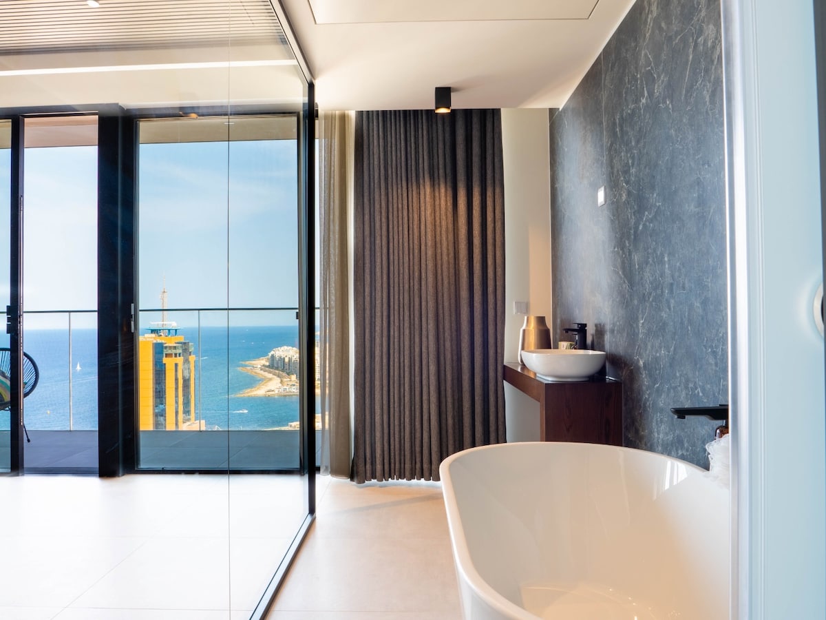 Disfruta de una estancia de lujo en este impresionante apartamento en el piso 19 del edificio más prestigioso de Malta: Mercury Tower. Alójate en el corazón de la isla, donde tendrás todo lo que necesitas a tu alcance en la zona más vibrante de Malta. Disfrutarás de unas vistas impresionantes: el apartamento incluye un dormitorio doble, una sala de estar con sofá cama, una cocina totalmente equipada y un baño con bañera de hidromasaje. ¡Disfruta de tu estancia en Malta!