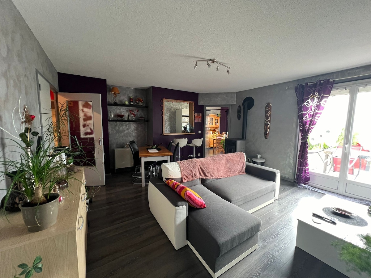 Situado en el corazón del pueblo de St Julien Chapteuil. A los pies de los volcanes , cerca del Mézenc , y a 20 minutos de Puy en Velay con su patrimonio clasificado . Apartamento de una sola planta, para 4 personas máx. con terraza , aparcamiento privado. Consta de un dormitorio con cama de 140 , sala de estar con sofá cama de 2 plazas , cocina equipada , (equipamiento de bebé bajo petición .) cerca de todos los comercios y muchas actividades cerca: senderismo , bicicleta de montaña , piscina , jardín de infancia , petanca .....