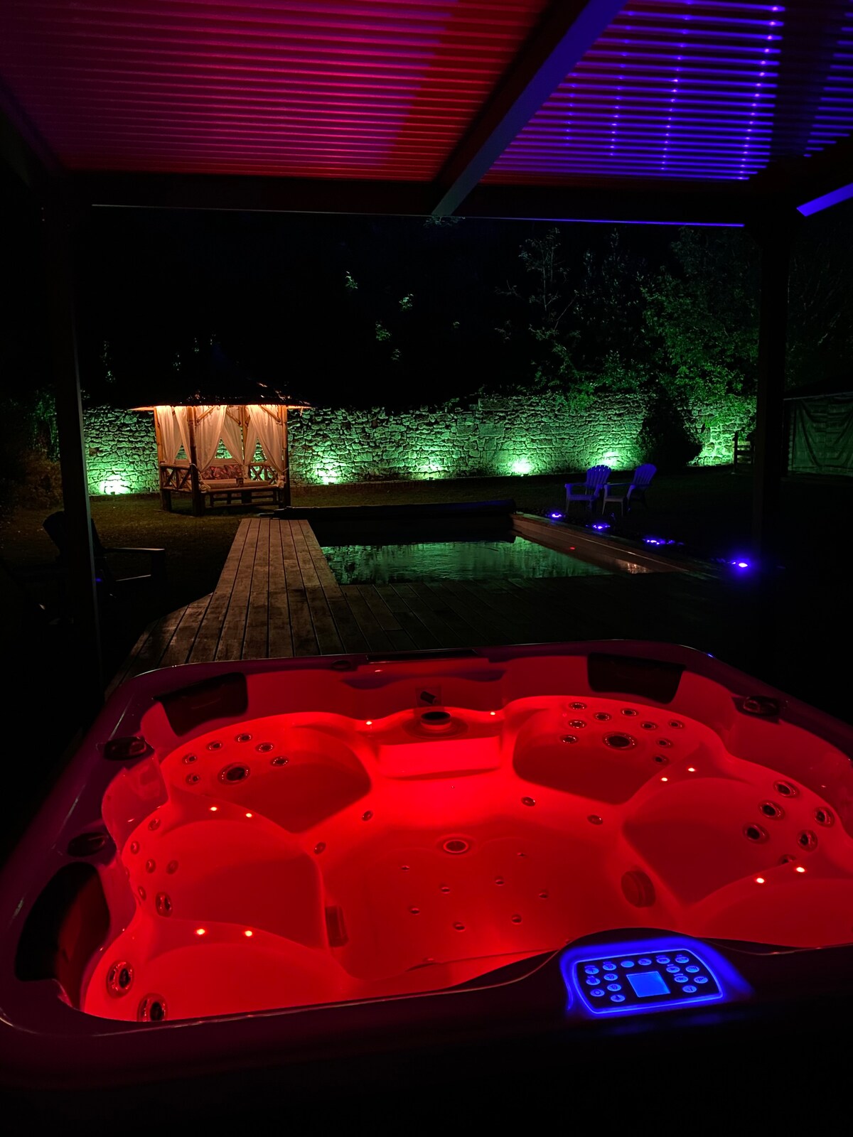 Au calme de la campagne, sans aucun vis-à-vis. Le studio se compose d’un accès direct au jacuzzi 6 places, qui vous sera exclusivement dédié sans limite de temps. Une température parfaite en fonction de la saison. Encore plus agréable en hiver Idéal pour une soirée détente à deux. Piscine chauffée. Votre arrivée peut se faire à partir de 18h (Airbnb annonce 15h je ne peux pas modifier) Départ le lendemain 11h. Si possible, je m'adapte pour l’heure d’arrivée. (Serviettes non fournies)