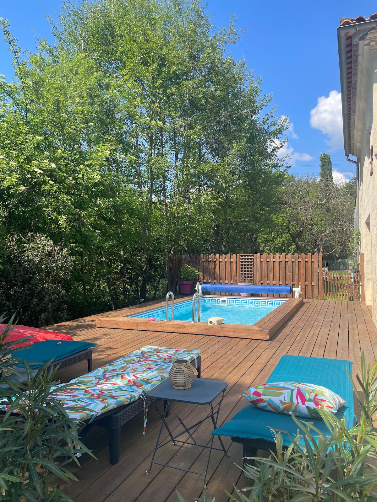 🏡Idéalement situé dans le Nord Gironde à 10 min de Saint André de Cubzac et 3 min de L'ange bleu (grand cabaret réputé), évadez vous dans ce chalet cosy de 39 m², niché dans notre jardin avec vue imprenable sur la nature🍃🌳🌿. Profitez d’un accès direct à la terrasse et la piscine. Venez passer un séjour inoubliable à 40 min 🍷de Bordeaux centre, Saint Émilion et Blaye et à 1h15 🏖️d'Arcachon et Royan. L’accès piscine est partagé😇.