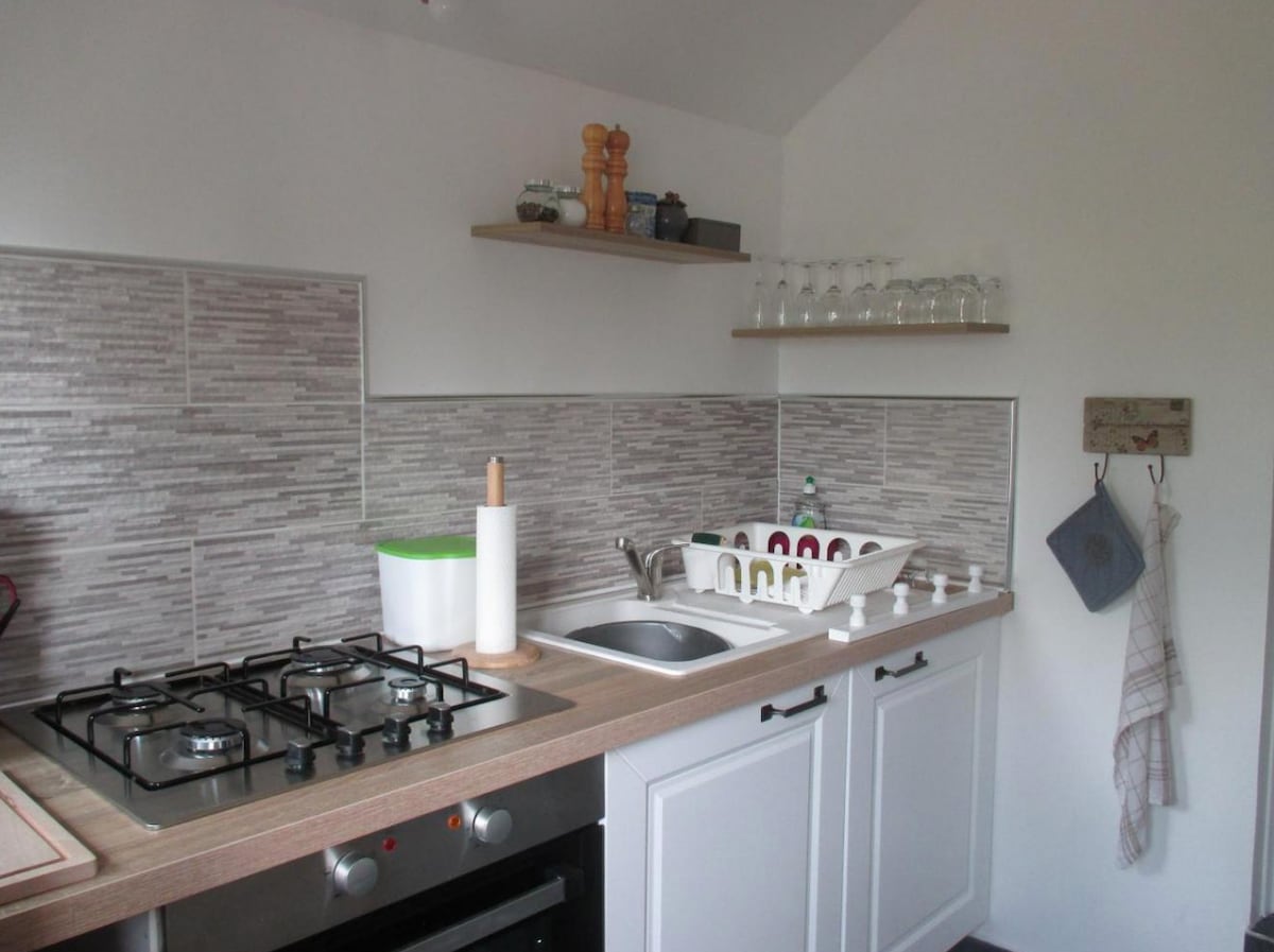 Encantador apartamento independiente Bienvenido a nuestro acogedor apartamento totalmente equipado, situado al final de nuestra gran casa. Disfrutará de una sala de estar con sofá cama, un amplio dormitorio, una cocina funcional y un baño con ducha. Ideal para una estancia tranquila, en plena naturaleza y a 10 minutos de los servicios y autopistas Si lo desea, puede disfrutar de los muebles de jardín y una mesa y sillas .