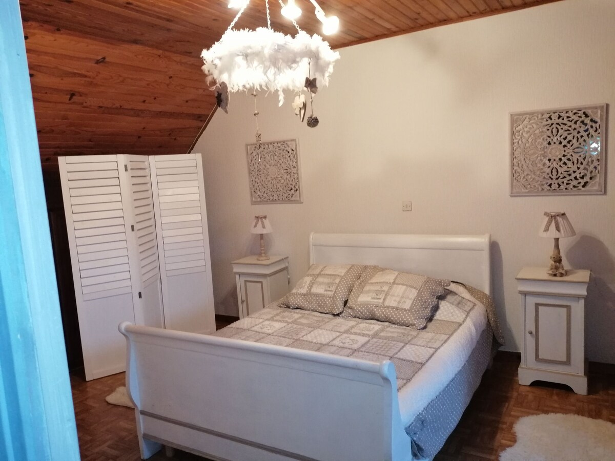 Un paréntesis de dulzura, un deseo de descubrir nuestra hermosa costa de Ópalo. Le damos la bienvenida, junto con Susie, nuestro bichón, a nuestra casa. La habitación se encuentra arriba, con baño y aseo privado (esto permite una total autonomía e independencia con respecto a los ocupantes de la casa), una televisión, una cama de 160x200, ropa de cama de calidad (Descamps) y una bandeja de cortesía. Desayuno continental (Pan, brioche, pastel, mermelada, yogur está hecho en casa) incluido