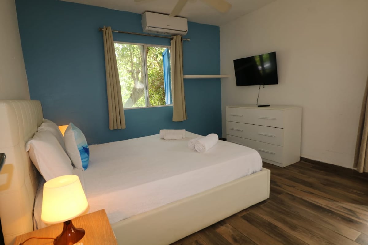 No se puede pedir una mejor ubicación para este romántico estilo caribeño de 1 cama. A 7 minutos a pie de la mejor vida nocturna, restaurantes, spas y casinos de la isla tiene para ofrecer. La habitación está amueblada con una cama tamaño king. A solo unos pasos de la playa Simpson Bay y Maho Beach con bares de playa que sirven desayuno, almuerzo y cena. Disfruta del JACUZZI en el jardín. ¡O utiliza nuestra plataforma de observación para ver los aviones desde el mundialmente famoso aeropuerto Juliana!