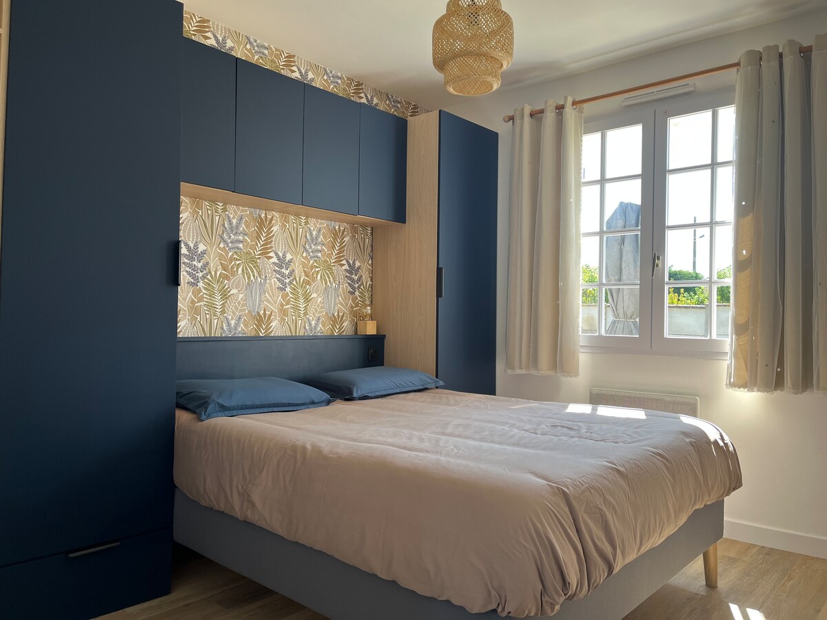Situada en una calle tranquila, a dos pasos de la gran playa de Tharon, esta casa de campo totalmente renovada cuenta con un hermoso jardín privado y vallado con cenador y mesa exterior para disfrutar de sus comidas al aire libre en verano. La reserva incluye un desayuno vegetal y hay bicicletas disponibles para explorar la zona. ¡Hay hermosos paseos para hacer en los senderos costeros! Las tiendas y los mercados están a 10 minutos a pie. Se aceptan perros bajo ciertas condiciones.