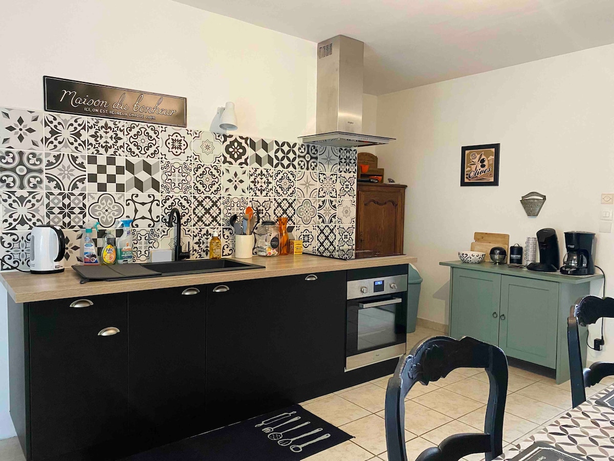 Venez vous ressourcer et vous retrouver seul ou en duo dans ce cocon de 80m2 entièrement rénové, situé au cœur du joli village ancien de Gensac en Gironde, avec une vue imprenable sur la vallée où vous pourrez admirer le soleil couchant. Vous serez conquis par son charme suranné, sa déco atypique et soignée et son confort incomparable. Un petit-déjeuner "à la française" vous est offert pour votre première nuit !