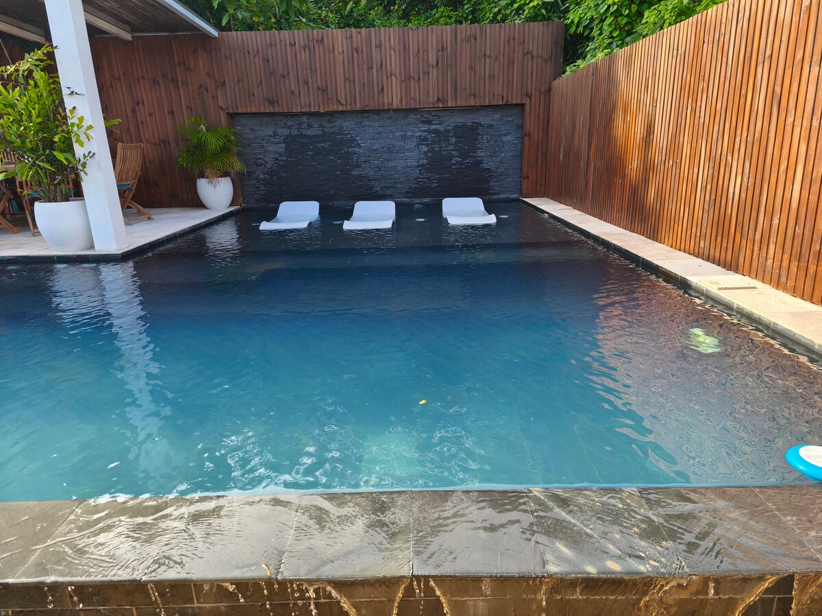 ¡A esta casa nos encanta! Una pequeña casa centenaria de madera de hierro... Un jardín exuberante rebosante de plantas tropicales... Dos varangues y una terraza con brasero... Un diseño cuidado... Al lado, el Cap Malo para sunsets fabulosos, y la increíble piscina costera del Barril... Dos baños al aire libre, con ducha o bañera... y por la noche, si lo desea, las suculentas comidas de Nathalie entregadas a su mesa... ¡Será feliz en casa de la abuela Malvado!