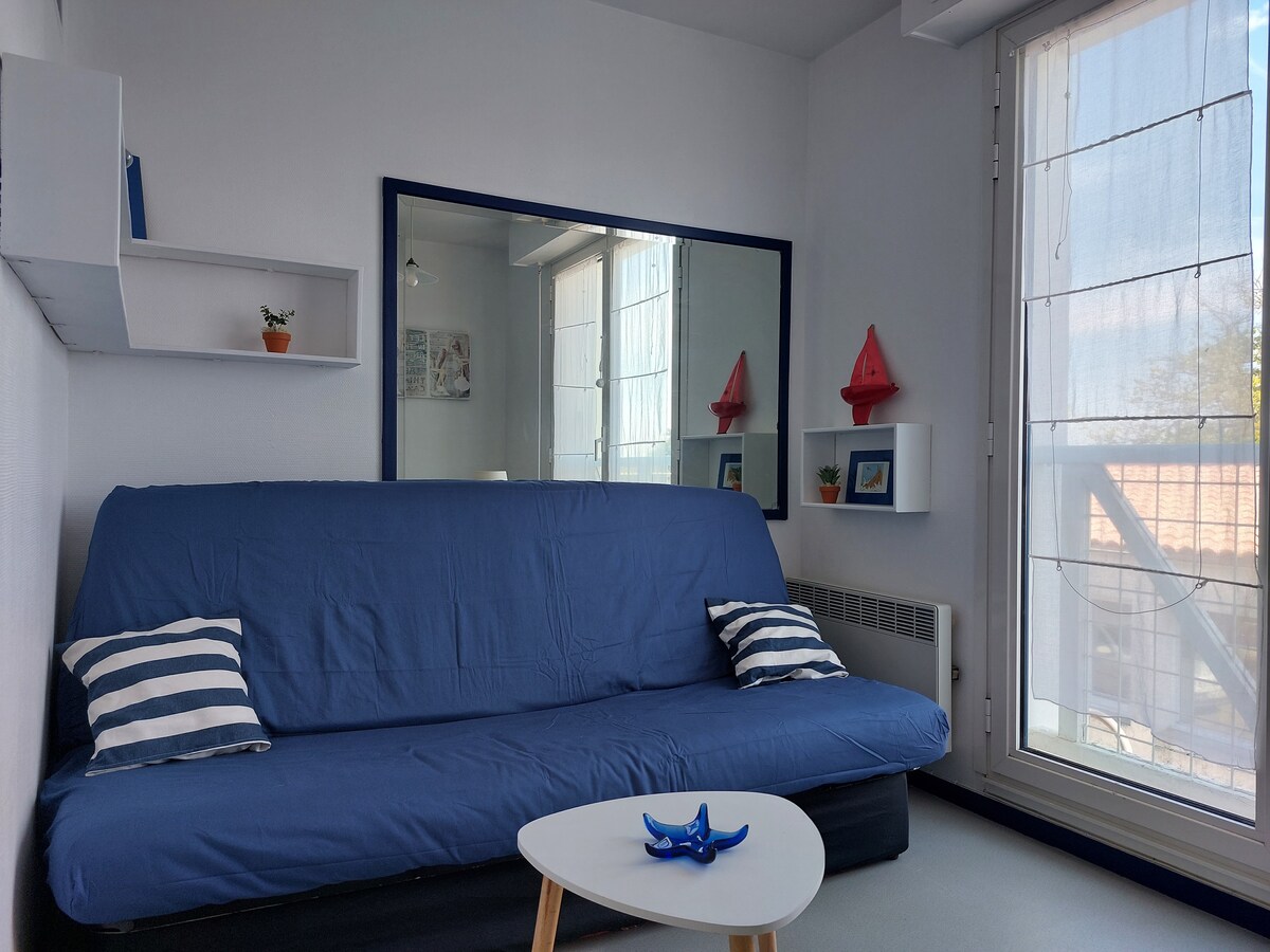 Coqueto apartamento en el corazón de la ciudad , en el seno de una residencia tranquila y a 200 metros del puerto y la playa. Ideal para una pareja. Cocina americana totalmente equipada, con cocina eléctrica a estrenar y horno, nevera,... bonita sala de estar luminosa, dormitorio aparte, cuarto de baño con ducha y WC. No se proporcionan sábanas ni toallas, pero hay una pequeña tienda de comestibles, paños de cocina, papel higiénico...