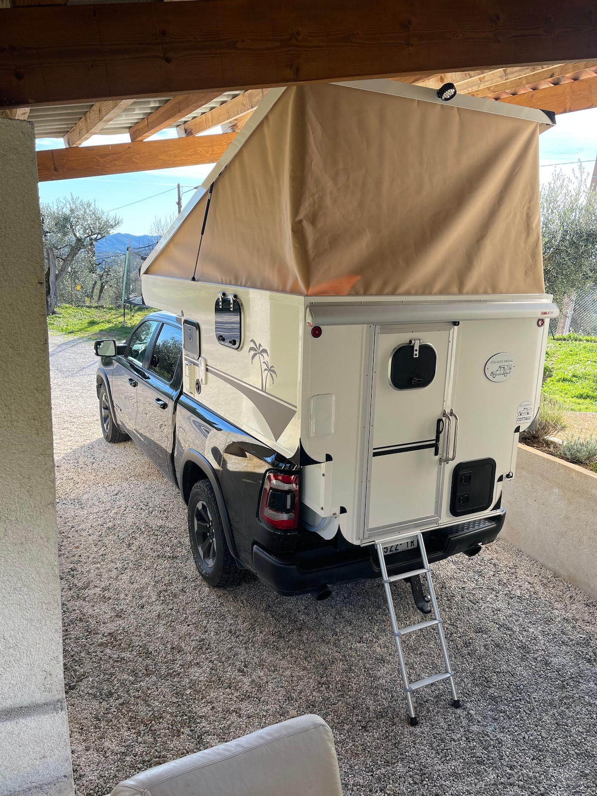 Viajar en total autonomía fuera de los caminos trillados con una camioneta americana y su celda con capacidad para 2 adultos(cama de 2 m )y una cuna adicional . Cocina equipada con nevera ,ducha exterior de agua caliente instantánea, calefacción de gas, 100 l agua limpia, enchufe de camping y paneles solares y WC químicos. Vehículo de etanol Firma de un contrato de alquiler y estado del vehículo a la salida y a la devolución y copia del permiso de conducir y documento de identidad .