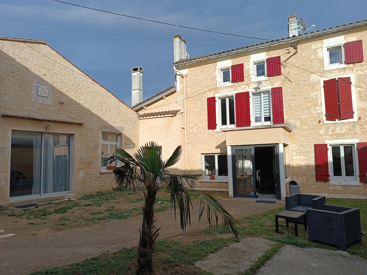 Au coeur des vignes de sud Charente cette belle maison fait partie d 'une ancienne propriété viticole. Havre de paix et tranquillité, le logement (120m2) est parfait pour un séjour de repos et pour découvrir notre belle région. En una ladera en medio de los hermosos viñedos de coñac del sur de Charente, esta encantadora casa privada forma parte de una antigua propiedad vinícola. Un refugio perfecto para una visita relajante, la casa de 120 m2 es espaciosa, tranquila y está idealmente situada para explorar esta encantadora región.