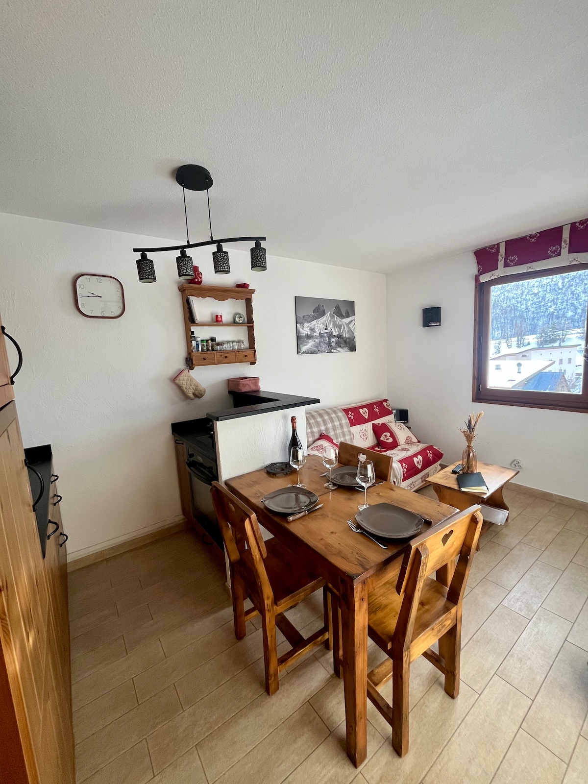 Situado en el corazón de Saint-Sorlin-d'Arves, a dos pasos de las pistas y de los comercios, este encantador apartamento T2/3 amueblado le ofrece todas las comodidades para una estancia en la montaña. Disfrute de unas vistas impresionantes de los Alpes desde el balcón orientado al sur, un interior cálido, aparcamiento cubierto y piscina en verano. Ideal para 4 personas, combina una ubicación perfecta, tranquilidad y autenticidad saboyana.