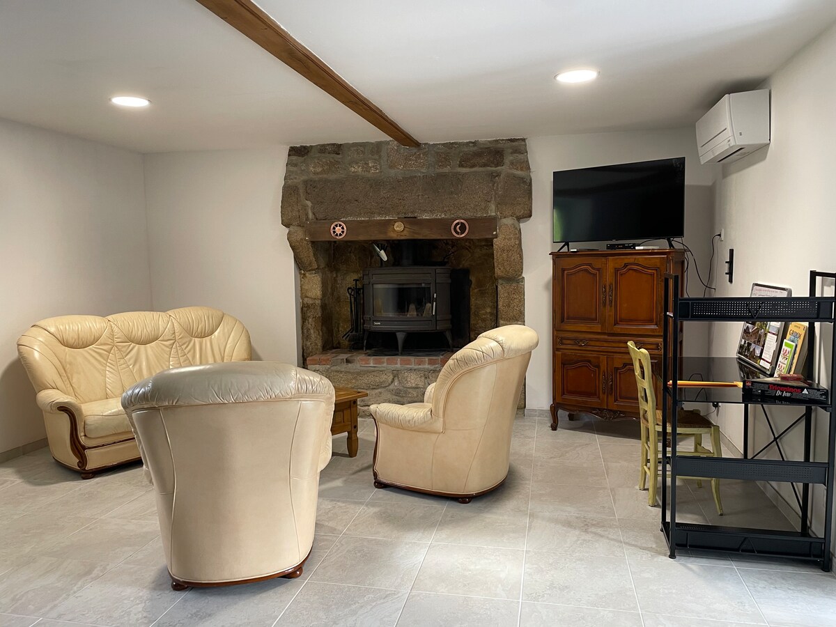 Venga a relajarse en esta casa rural con todas las comodidades en el campo bretón. Se alojará en la planta baja de esta hermosa casa recientemente renovada. El alojamiento consta de una hermosa zona de estar bañada por la luz con una cocina equipada y una sala de estar. También hay dos amplios dormitorios: un dormitorio con una cama de matrimonio y un dormitorio con una cama de matrimonio y una cama individual. Las camas dobles son 140x190. Por último, también hay un hermoso cuarto de baño con ducha a ras de suelo.