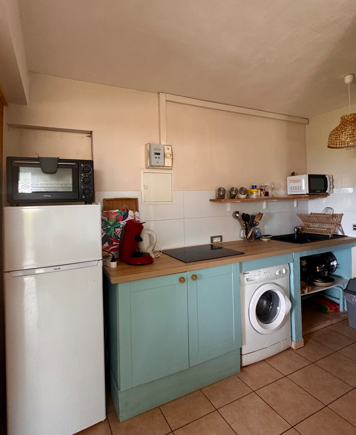 T2 tranquilo en el campo. Cerca de los servicios. A 7 km del aeropuerto. 1 salón con sofá cama. 1 cocina equipada. 1 zona de comedor. 1 dormitorio con aire acondicionado con armario. 1 cuarto de baño. 1 zona de relajación tranquila que permitirá tomar el desayuno o hacer una barbacoa. Posibilidad de acomodar a 2 personas más: 7 euros por persona/ por noche