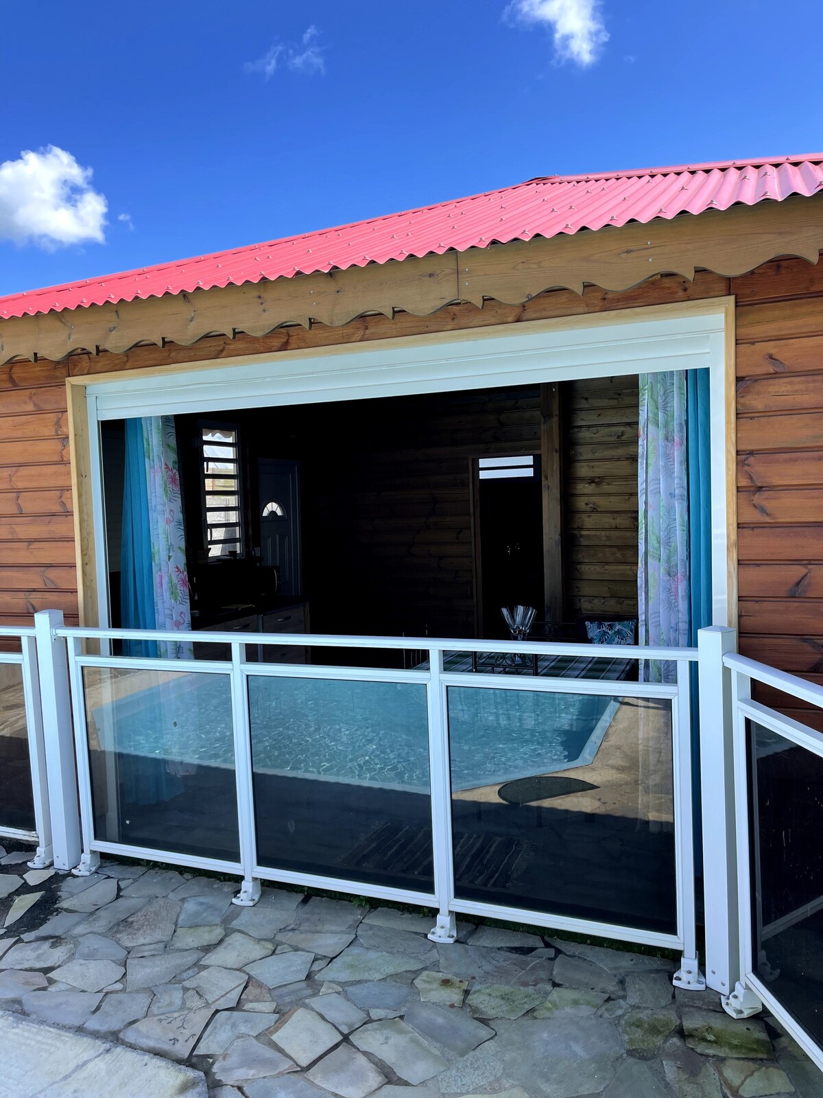 Pasar la calidez a "CÁLIDA". Sustituir el estrés por "La ZEN Attitude". Olvídate de las duchas frías de los problemas en un "Baño de FRESCURA". Este es el programa que le ofrece "BUNGOOD" en su entorno de madera, arrullado por los vientos alisios y adornado con una bonita piscina. Este pequeño "BUNGALOW" de grandes cualidades situado en Dalciat Baie-Mahault le sorprenderá e invitarlo a relajarse en un entorno tranquilo y agradable.