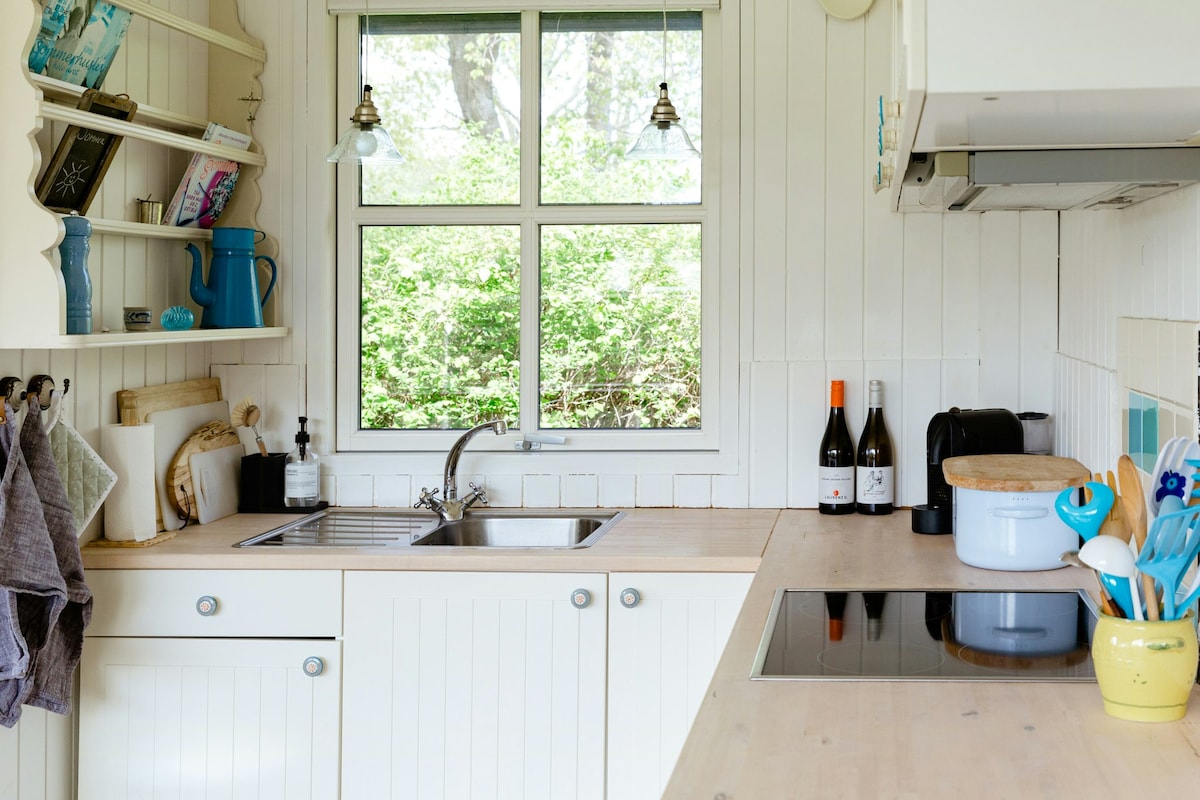 Relájate en esta casa única y tranquila en medio de la naturaleza, cerca del bosque y la playa. La casa consta de dos habitaciones decoradas como un dormitorio doble y una acogedora sala de estar con sofá cama separado, así como una cocina comedor y un baño. Desde cada salida de la habitación hasta una hermosa terraza con vistas a un pequeño y encantador bosque con muchos senderos acogedores. TV e Internet No se admiten mascotas. No se admiten mascotas.