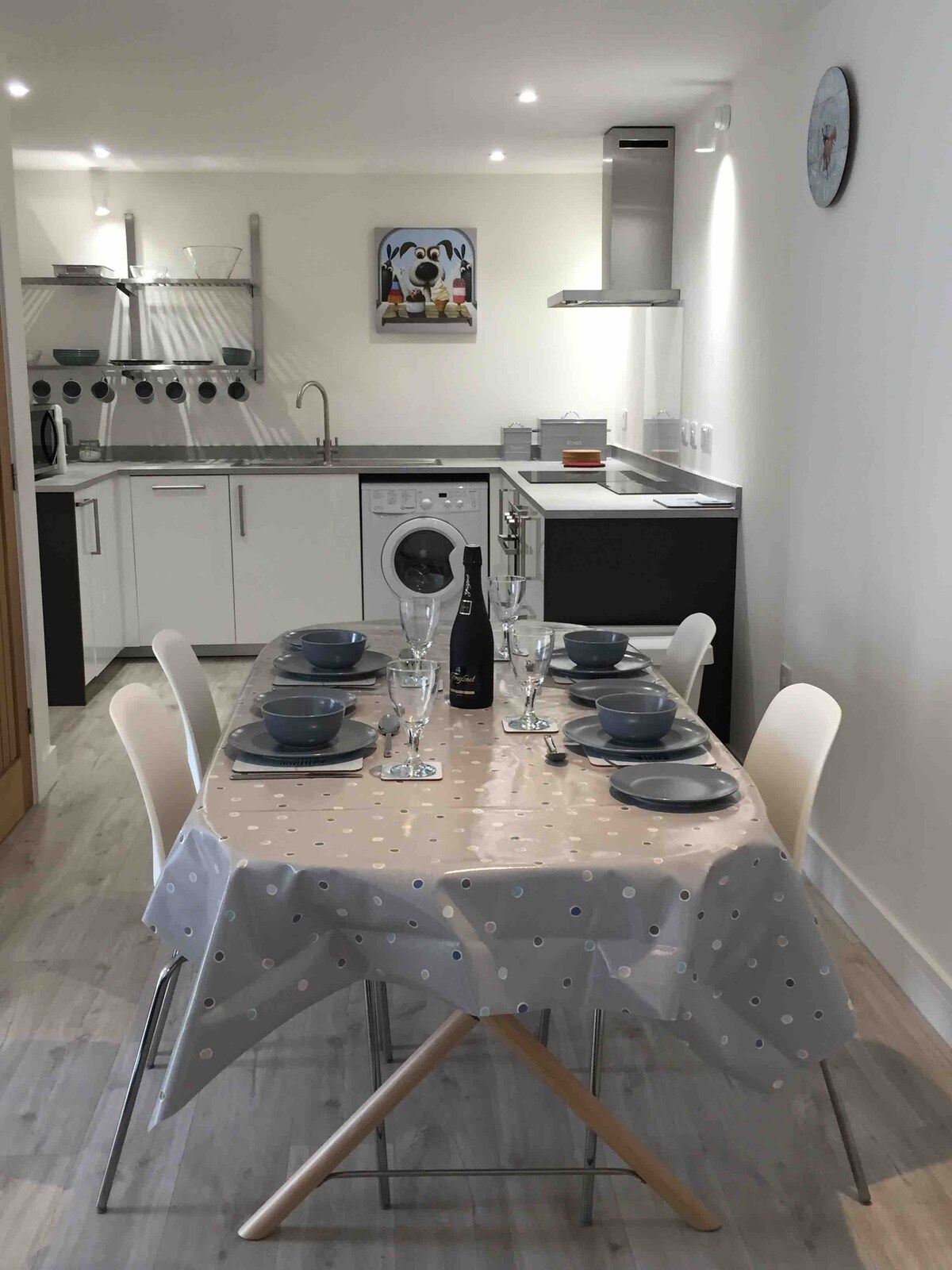 A solo 5 minutos a pie cuesta abajo del centro de la ciudad, la propiedad de reciente construcción, tiene capacidad para 4 personas. Aparcamiento para 1 coche, 2 bajo petición. Una encantadora casa de 2 dormitorios, muy bien equipada y completada a un alto nivel. Tiene un salón contemporáneo de planta abierta y 2 dormitorios. 1 dormitorio es tamaño king y el otro es de planta abierta en el rellano con 2 individuales, ideal para niños y adolescentes. Se ofrecen estancias cortas de 2 noches, pero se requieren 7 noches en las vacaciones escolares principales. NO SE ADMITEN MASCOTAS. Si tienes alguna pregunta, no dudes en preguntar.