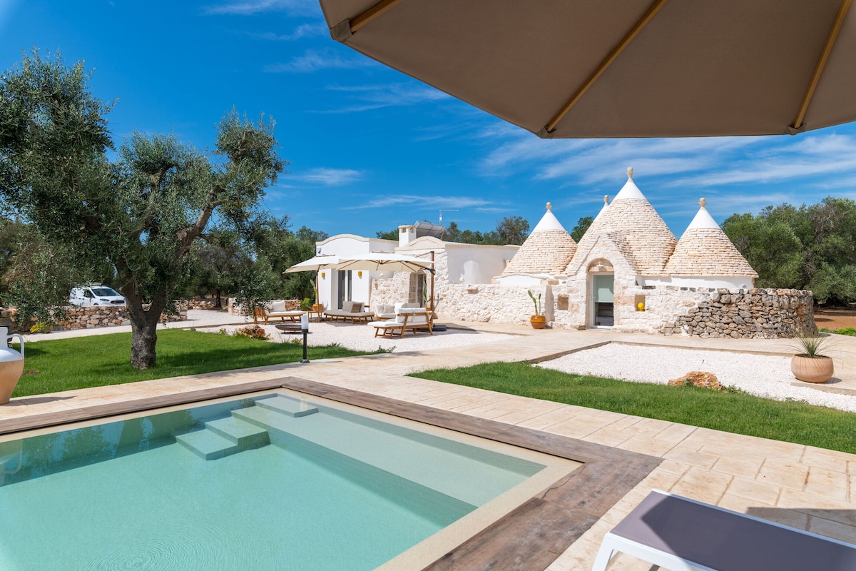 Esta villa y trullo de 1780, llamado trullo Fedele Bonotto, han sido completamente restaurados, pero aún se encuentran entre los olivos centenarios de la zona. Admira las históricas paredes de piedra, relájate en la piscina privada y el solárium, y disfruta de la hermosa zona del jardín, todo exclusivo para los huéspedes y su privacidad. El personal que se encarga de la limpieza de los espacios externos e internos de la propiedad sigue estrictamente las normas sanitarias previstas para la COVID-19. Antes de la llegada de cada huésped, se lleva a cabo un saneamiento completo. El tamaño de la casa y el gran jardín garantizan absolutamente las distancias de seguridad social y sin contacto. La villa, con olivos centenarios, tiene un comedor y una cocina totalmente equipada con utensilios y vajilla, lavavajillas, nevera y horno. Gracias a un pasillo se llega a los dos dormitorios dobles, cada uno con su propio baño. Separado de la villa, con entrada independiente, se accede al trullo, de unos 50 m2 de superficie, donde hay una cama doble, un sofá cama doble y un baño privado. En la zona exterior hay una gran mesa con 10 sillas, varios asientos, una barbacoa y la piscina para uso exclusivo de los huéspedes. También está unido a la villa el cuarto de la caldera con lavandería, completo con lavadora. ¡Toda la estructura es para uso exclusivo de los huéspedes que pueden vivir en estos momentos inolvidables de descanso y tranquilidad! Los huéspedes tienen el uso exclusivo de toda la villa y del trullo adjunto, y de toda la zona al aire libre, que incluye la sala de estar, la piscina y la lavandería. Inmersa en la impresionante campiña, la casa está situada cerca del centro de Ceglie Messapica. Cena en excepcionales restaurantes de propiedad familiar, navega por los mercados locales y da un paseo a pie o en bicicleta por los valles. Tienes un aparcamiento para tu coche, en 20 minutos llegas a las playas del mar Adriático, en 30 minutos puedes llegar a las playas del mar Jónico.