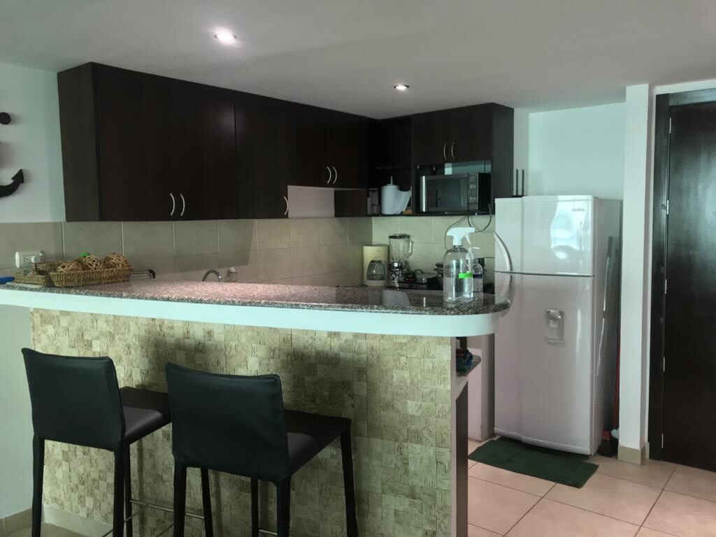 Acogedor apartamento al pie del mar en el piso 13 del Hotel Colón Miramar, lo que le da una espectacular vista de la playa. Cuenta con las comodidades necesarias para disfrutar tus vacaciones: -Habitación máster: cama King y baño completo -Comedor -Cocina completa -SmartTV con servicio de streaming en habitación y sala -Lavadora y secadora -Wifi -Parqueo privado -Seguridad 24/7 -Servicios del hotel: piscina, gym, spa, sauna