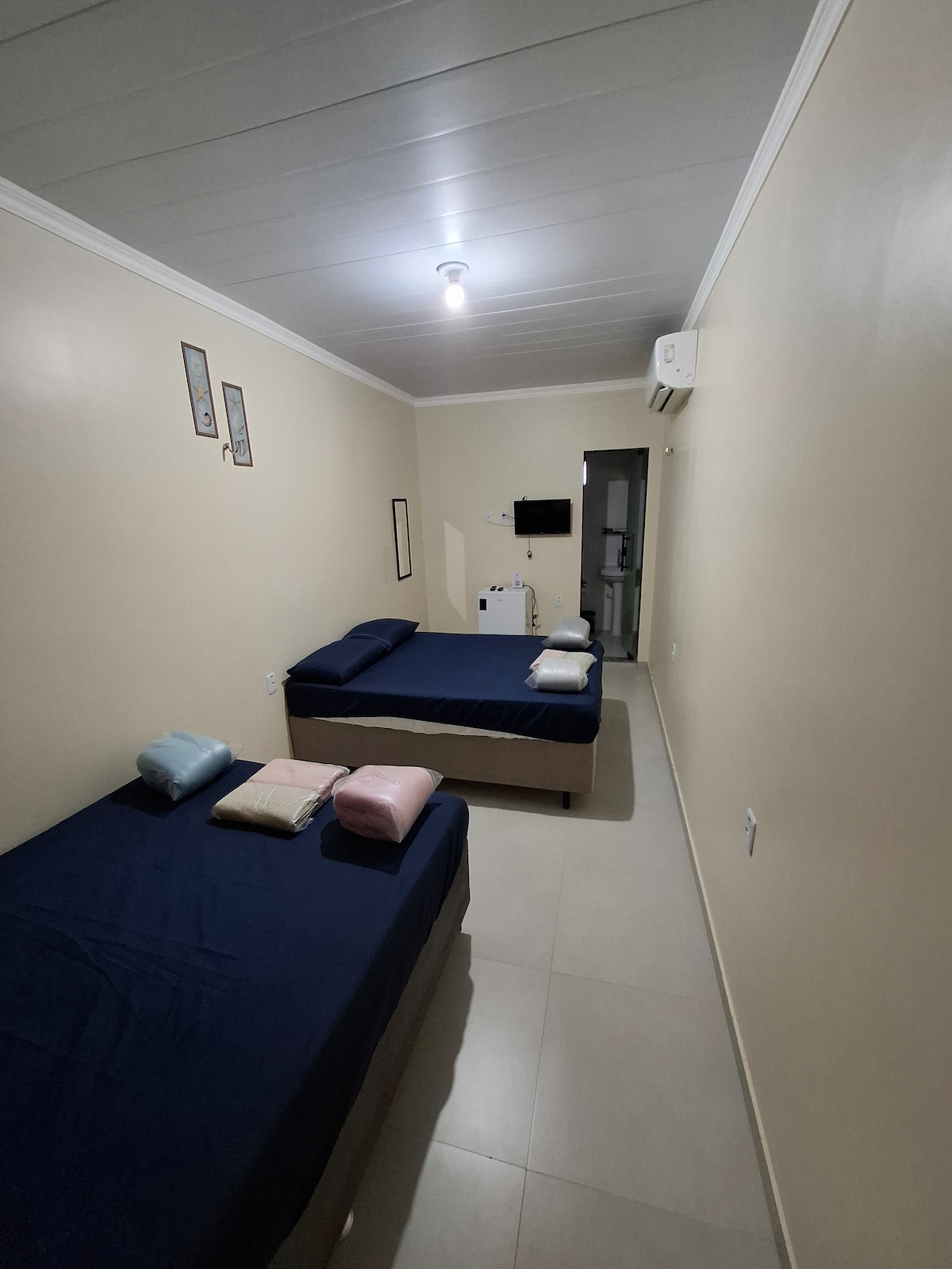 Apartamento de 54m² (vista para o mar) com cozinha americana e sala integrados, sala com sofá cama, Smart TV 40” e 3 ar condicionados, cozinha com mesa e 4 cadeiras, micro-ondas, frigobar e utensílios básicos, além de varanda com mesa e cadeiras. Possui 2 banheiros e 2 quartos, sendo um suíte com cama casal e outro com 2 camas de solteiro e bicama . Possui amenities e enxoval completo. Wi-fi gratuito no apartamento e áreas sociais.