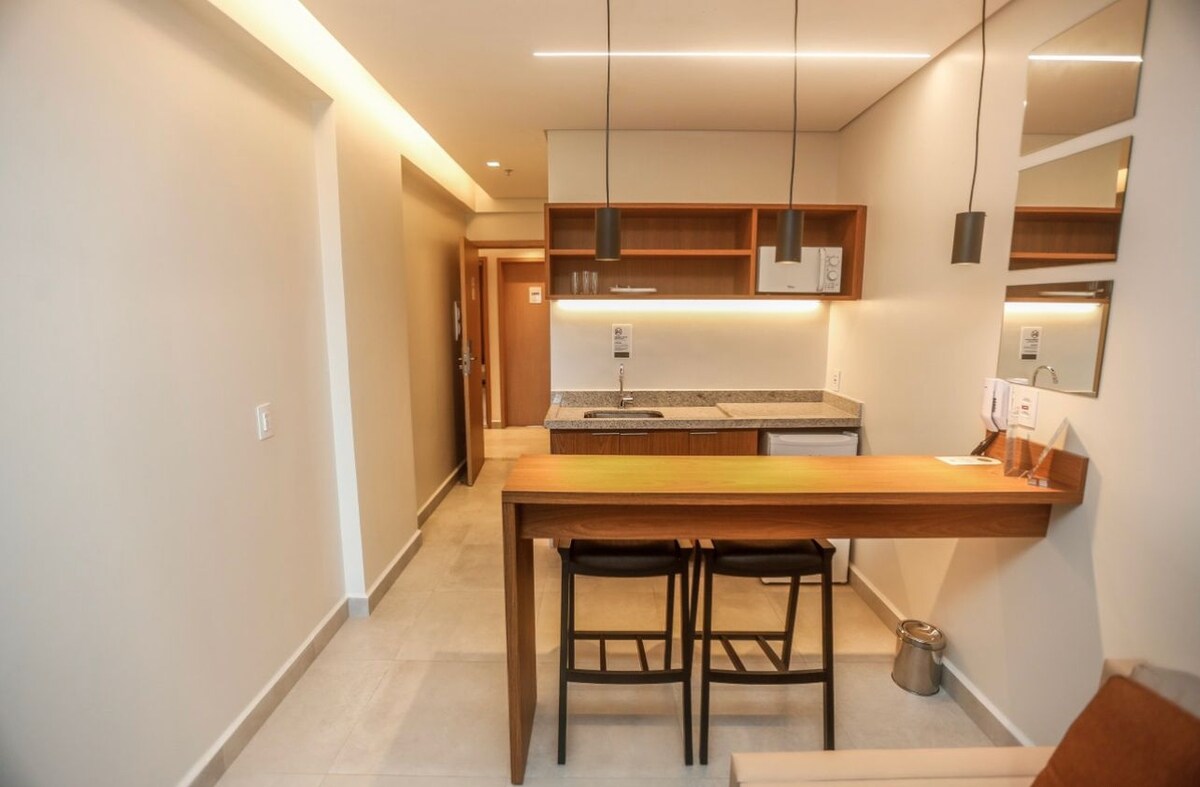 Estructura completa de resort a 3 minutos de la maravillosa playa de Atalaia en Salinas. Apartamento Smart (30m²) con cocina americana con encimera y taburetes, microondas, minibar y utensilios básicos (platos, cubiertos y vasos). Habitación con cama doble y cómodo sofá cama doble, 2 smart TV 40”, 2 aire acondicionado y balcón. Un baño y ropa de cama completa (de cama y baño). Wifi gratuito en el apartamento y zonas comunes. Unidad en multipropiedad con servicios comunes de hotel.