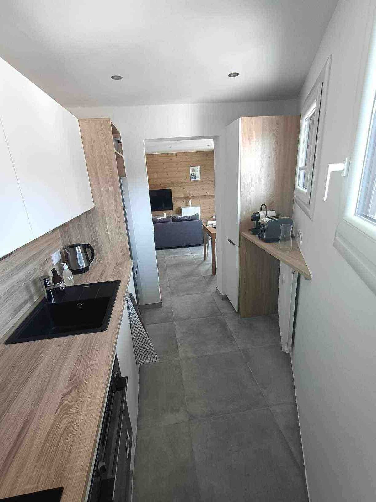 Encantador T2 de 40 m², de una sola planta y con entrada independiente. Consta de una gran sala de estar, con cocina abierta equipada (lavavajillas, cafetera Tassimo, hervidor de agua, tostadora, aparato de fondue raclette) y una zona de estar con TV, WI-FI, un dormitorio con una cama de 160 y un baño con ducha, lavadora. Renovado con materiales de calidad (madera calentada, encimera de granito, radiador de piedra) y equipamientos de calidad (ropa de cama tipo hotelero, sofá de masaje)