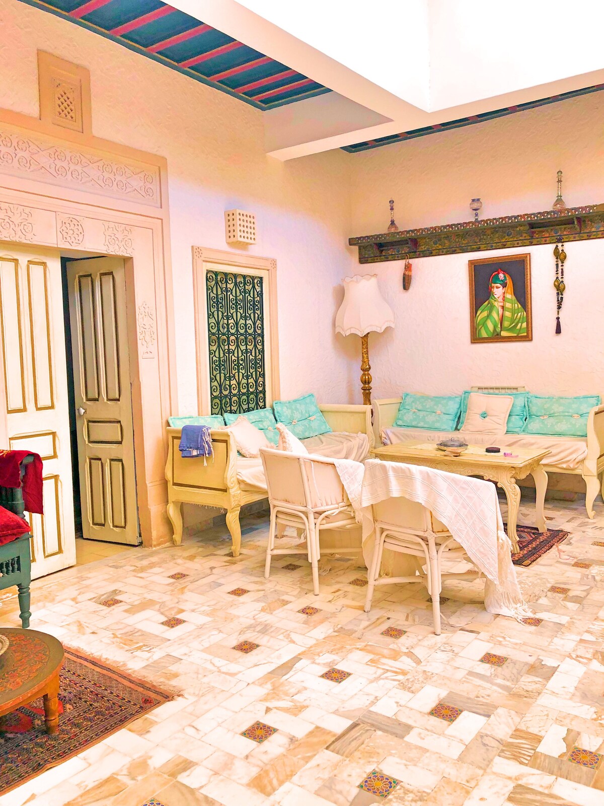 No puedes estar en el corazón de Hammamet más que este lugar,si eres una sola persona con un niño, es el lugar ideal si quieres ver a Hammamet como un local y disfrutarlo desde el interior como lo hicieron nuestros abuelos hace mucho tiempo. Si hay una necesidad que hacer en hammamet es visitar la medina y la visita obligada de la medina es rue sidi abdelkader, donde el pequeño estudio se encuentra a metros de la gran mezquita y la escuela quránica con su famosa puerta pintoresca de estilo antiguo.