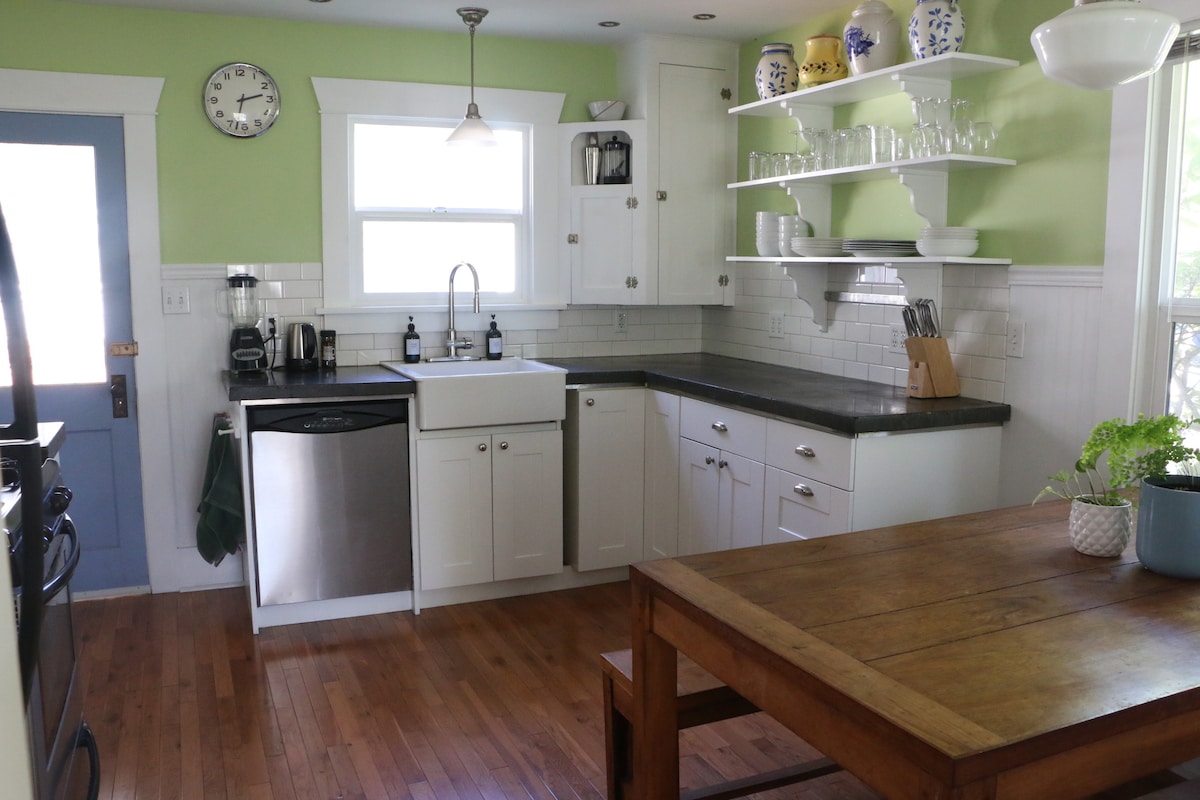 Nuestra casa de campo tiene un plano de planta estilo loft abierto. Espacioso, tranquilo y luminoso. 1,5 baños y 2 pisos. Acabados modernos y elegantes en todo. El piso principal tiene 1/2 baño fuera de la cocina y hay un baño completo con ducha cerca de la cama ubicada arriba. Es una “casa de huéspedes” independiente en el patio trasero de la casa principal. ¡Aparcamiento privado justo en frente de la puerta principal! El patio tiene fogata, muebles de exterior y barbacoa. Un oasis oculto, en medio del barrio de Ballard.