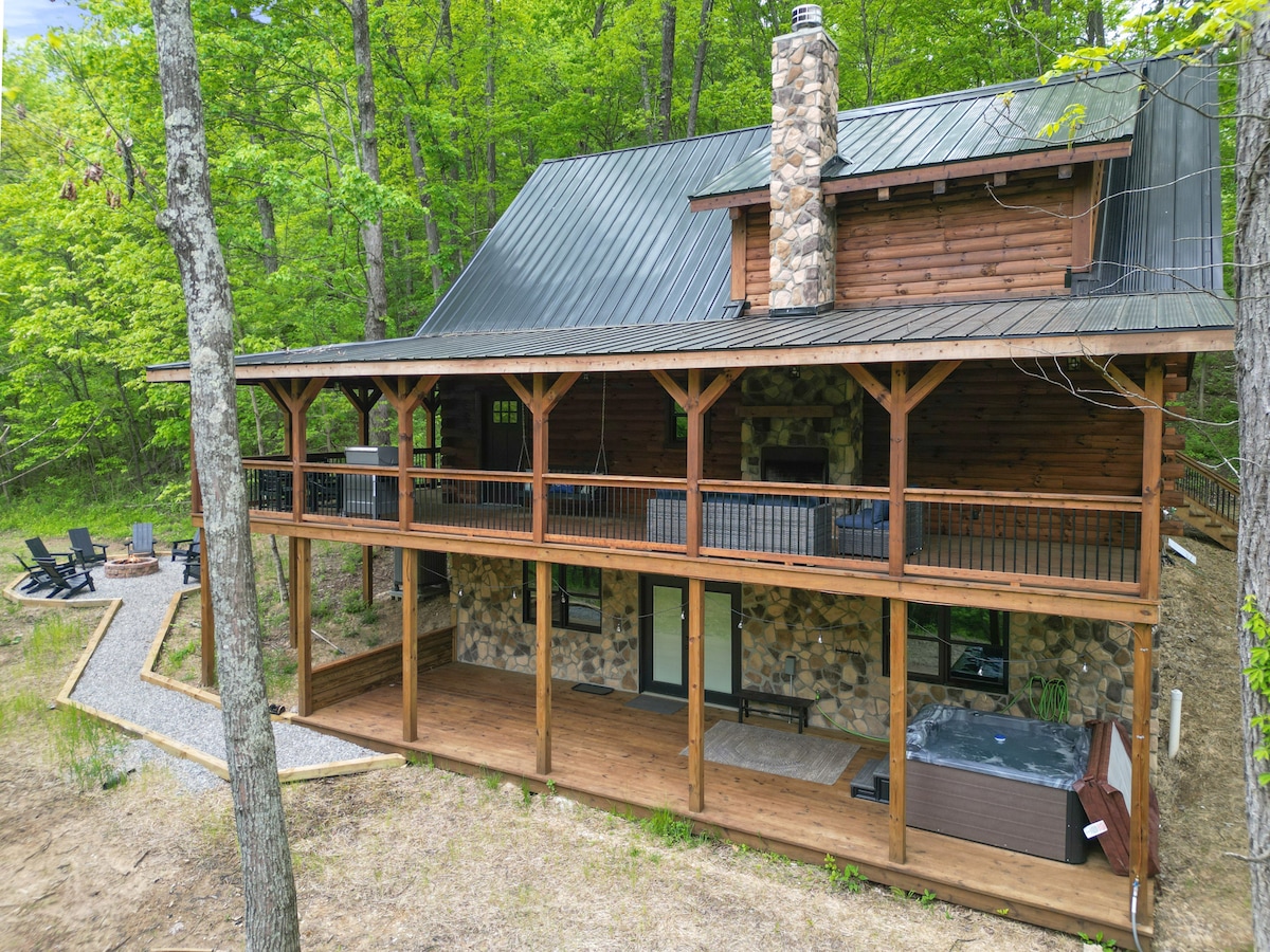 ¡Nuestra cabaña de alta gama ofrece un hermoso entorno rural en 4 acres y viene equipada con lujosas suites de dormitorios! Sumérgete en el jacuzzi y disfruta de la tranquila vista desde la terraza de la cabaña de madera o bebe una taza de café recién hecho en las mecedoras de nogal americano en el porche delantero. Nuestro espacio familiar tiene capacidad para 11 personas y los grupos más grandes son bienvenidos. El gran césped es perfecto para juegos, acampar en tiendas de campaña y pasar tiempo de calidad alrededor de la fogata. ¡Ven a disfrutar de nuestro acogedor espacio, haz tu reserva hoy mismo!
