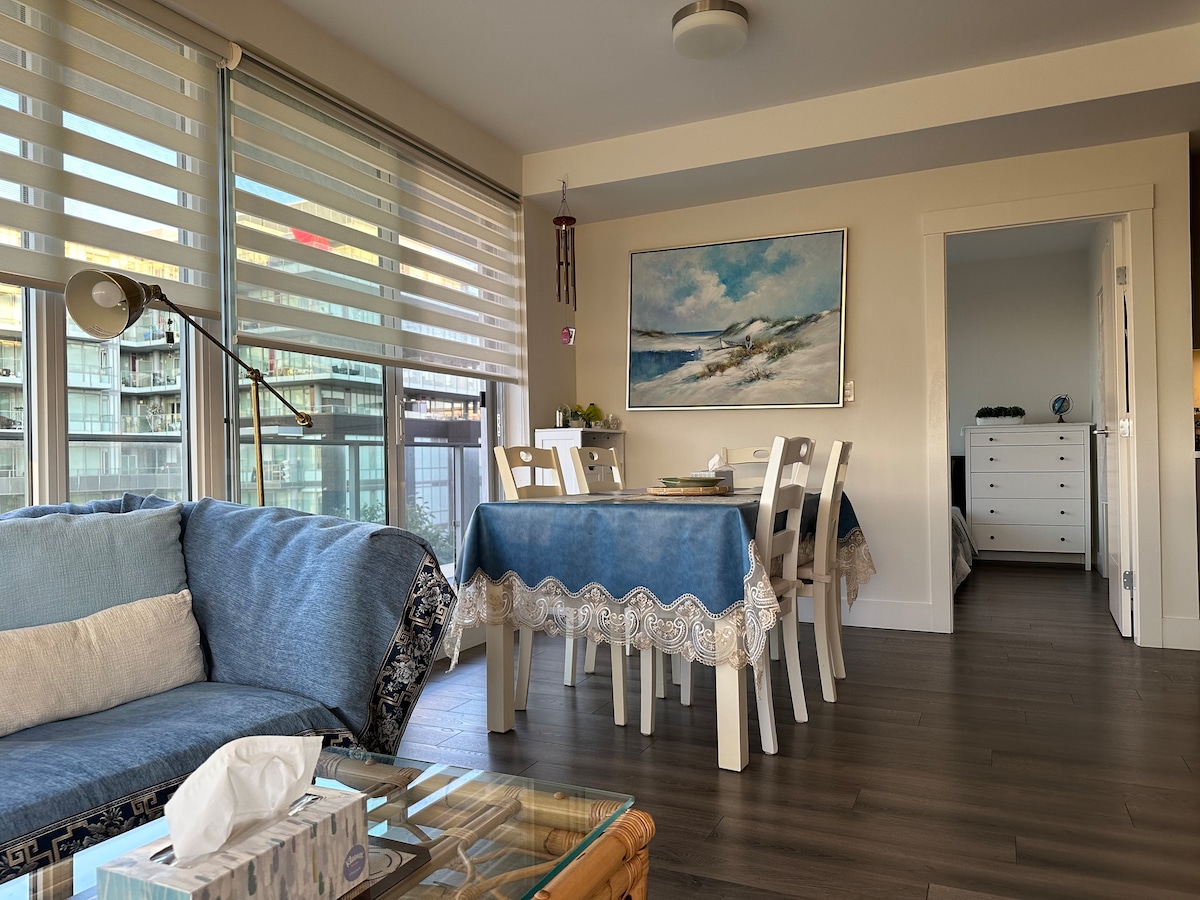 Suite de 2 dormitorios, luminosa y moderna, a solo 10 minutos de los transbordadores, el aeropuerto y el centro de la ciudad. Fácil acceso a VIU a través del autobús #8. Disfruta de techos de 9 pies, una cocina totalmente equipada con lavavajillas y freidora de aire, lavandería en la suite y una bañera profunda. Zona tranquila con estacionamiento en la puerta. Unidad libre de mascotas; se pueden escuchar mascotas pequeñas arriba. Perfecto para trabajar, estudiar o relajarse.