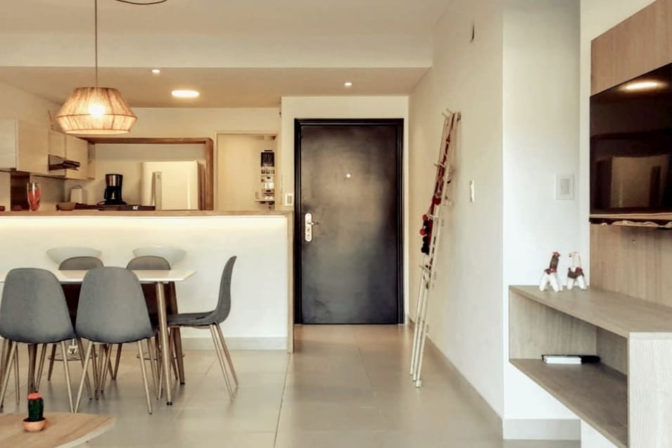 Moderno monoambiente en edificio sustentable y en una zona exclusiva de la ciudad, a 2 cuadras del Alto Noa Shopping, 3 del Paseo Balcarce, y 8 de la plaza 9 de Julio. Los colores elegidos crean un cálido lugar donde descansar y disfrutar Salta la linda! Equipado para 2 p, con aire acond, calef central, smart TV, balcon y parrilla. Terraza con vista 360 a la ciudad de Salta, pileta, sauna, SUM, solarium y varias parrillas. Seguridad 24hs. Veni a disfrutar de este espacio...te estamos esperando!