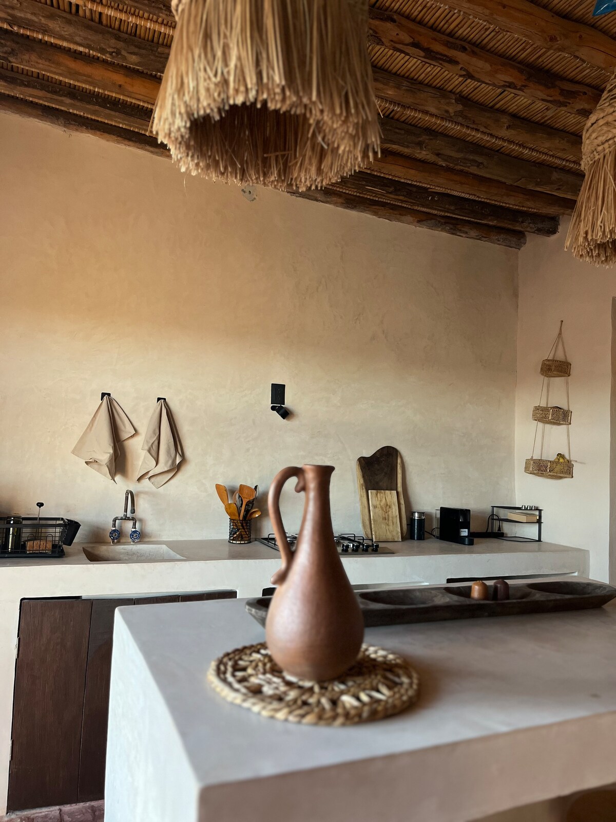 Rancho.Sabin0 es un proyecto agroecoturístico que ofrece una experiencia de conexión con la naturaleza. Ubicado a 53km de Saltillo y 20km de G.Cepeda, en medio del desierto. El mapa de ABnB los manda hacia 4ciénagas, no confundir, les haremos llegar la dirección correcta. La Casita fue construida con técnica de adobe. Diseñada para 2 personas, pero es posible adaptarla para 4. Cuenta con cocina, baño, chimenea, fogata, piscina, asador yWIFI de alta velocidad.