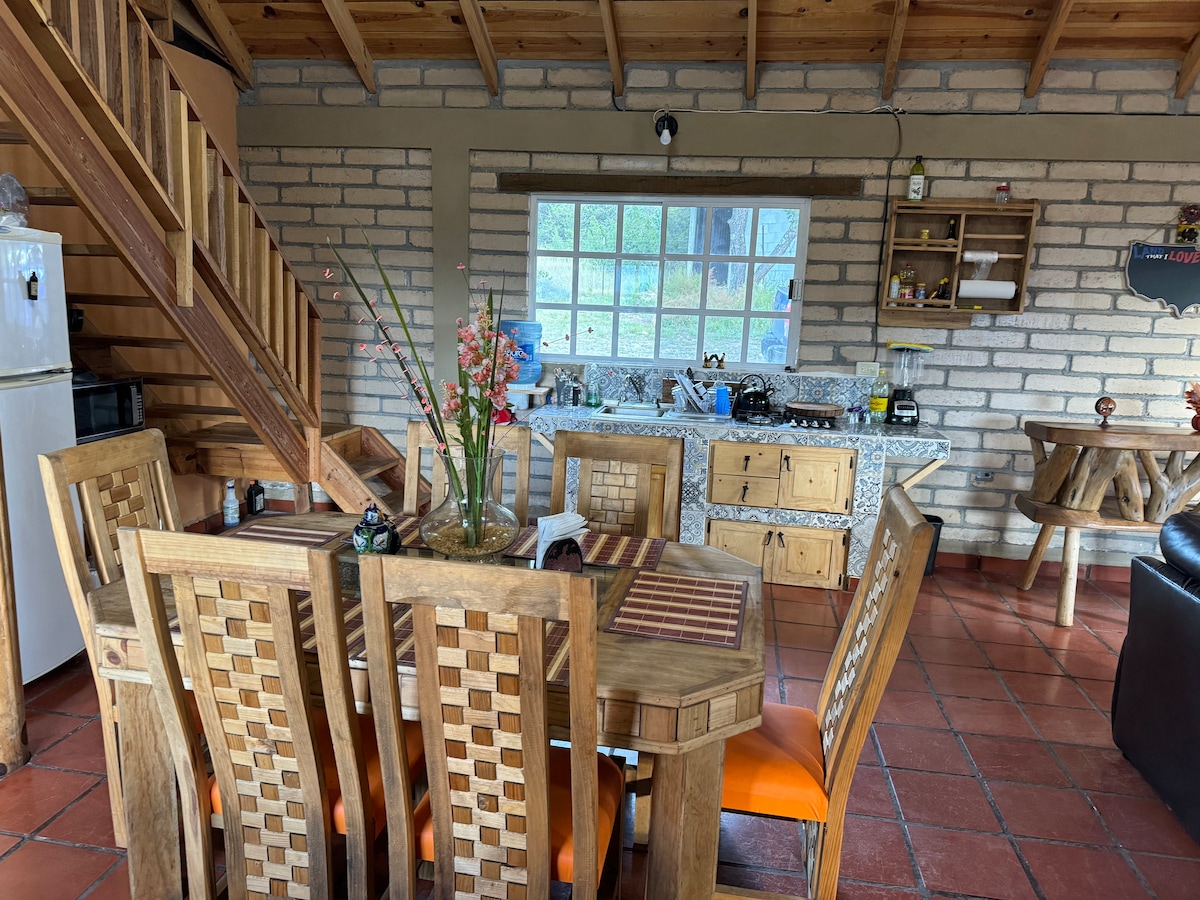 Acogedora cabaña familiar con la mejor vista de la sierra, a solo 1 hr de MTY y 10 min. de Arteaga. Las fotos lo dicen todo. Desconéctate, disfruta de un tequila mientras ves las montañas, lee al lado de la chimenea, juega una partida de petanque, relájate jugando un juego de mesa, sal a caminar a la sierra, grillea unos cortes en el Weber. Estamos a 15 min. de los viñedos. Desayuno con huevos del rancho y tortillas de harina precio extra. Starlink. No fiestas, no ruido.