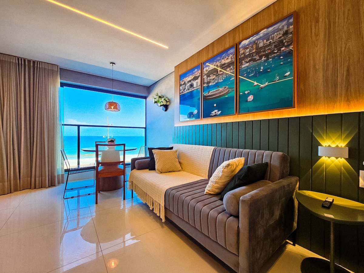 Alójate en un estudio frente a la playa en Salvador con una azotea panorámica, piscina, gimnasio y estructura completa de estilo resort, a pocos pasos de la playa. Acogedor, bien equipado y con aire acondicionado, con una cocina funcional, aire acondicionado, wifi y habitaciones diseñadas para brindar comodidad tanto para viajes de placer como para trabajo remoto. Acceso a las playas, al centro de convenciones, al aeropuerto y a los principales puntos turísticos, ofreciendo practicidad, seguridad y una experiencia diferenciada.