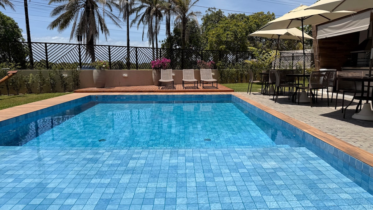 Casa Dúplex con Lago, Piscina, Barbacoa, Jardín y Cuidador privado, en Condominio Água, a 5 minutos a pie de la playa de Guarajuba. Dos habitaciones, una de ellas en suite, con 2 baños + 1 ducha, con capacidad para 6 personas y 2 niños, con 120 m2 en total, una hermosa zona llena de encanto y un gran ambiente, ubicada en un pueblo de lujo, súper tranquilo de 5 estrellas. Estacionamiento junto a la casa. A 100 metros del supermercado HiperIdeal, del centro comercial de Guarajuba, del Banco do Brasil, de restaurantes, de tiendas, etc.