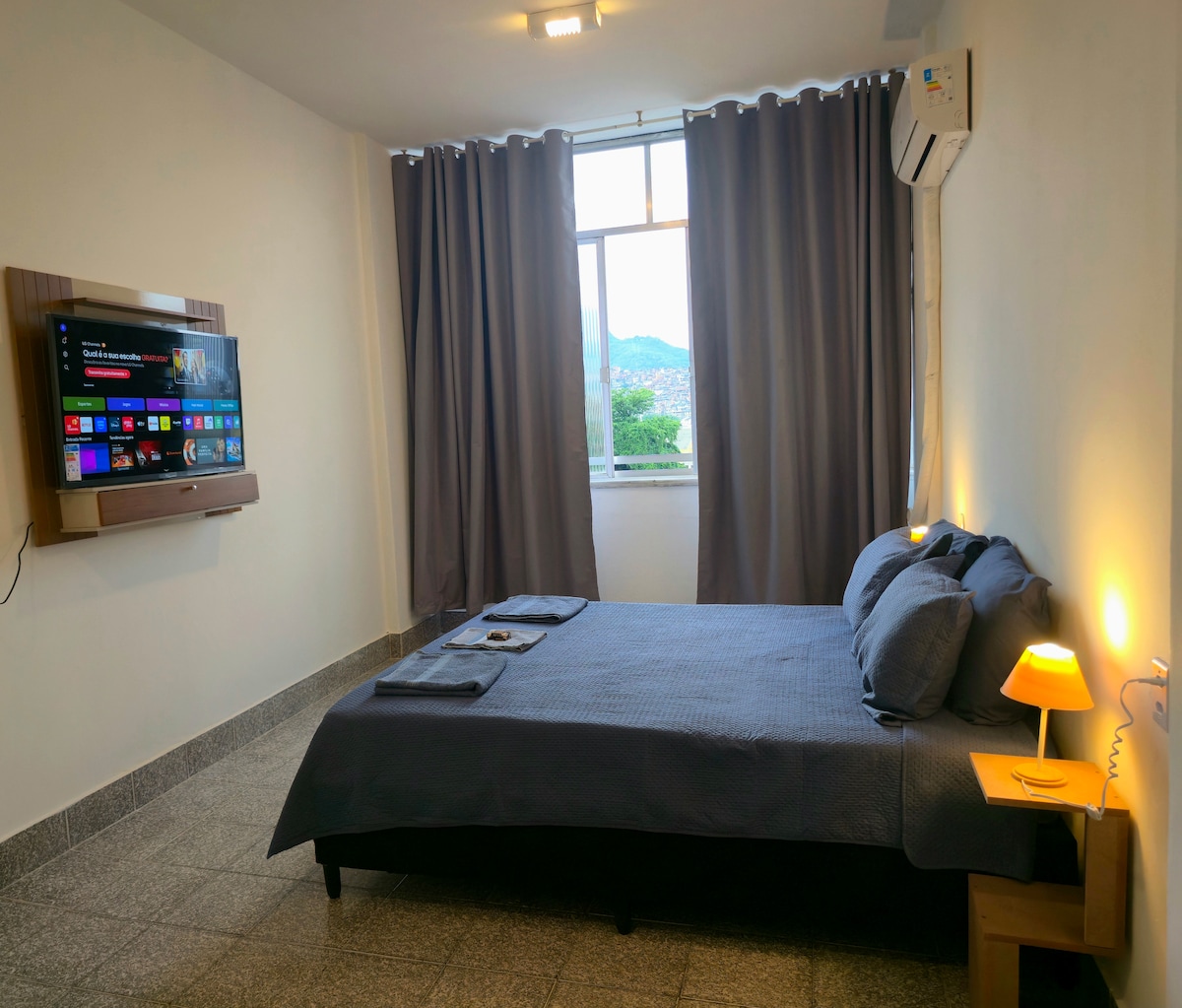 Apartamento situado en el pulmón de Río de Janeiro, junto al Sambódromo. Cerca de todos los puntos turísticos y centro comercial de Río, tales como: Avenida Rio Branco, Lapa, Escadaria Selarón, Museo del Mañana, Pedra do Sal y toda la costa de la zona sur de Río. El apartamento consta de 2 dormitorios con aire acondicionado, 1 cama doble y 2 camas individuales, 1 cama como auxiliar, sala de estar, despensa, baño y pequeña cocina. TV para cada habitación con servicios de streaming: Netflix, Disney+, Plutotv, etc.